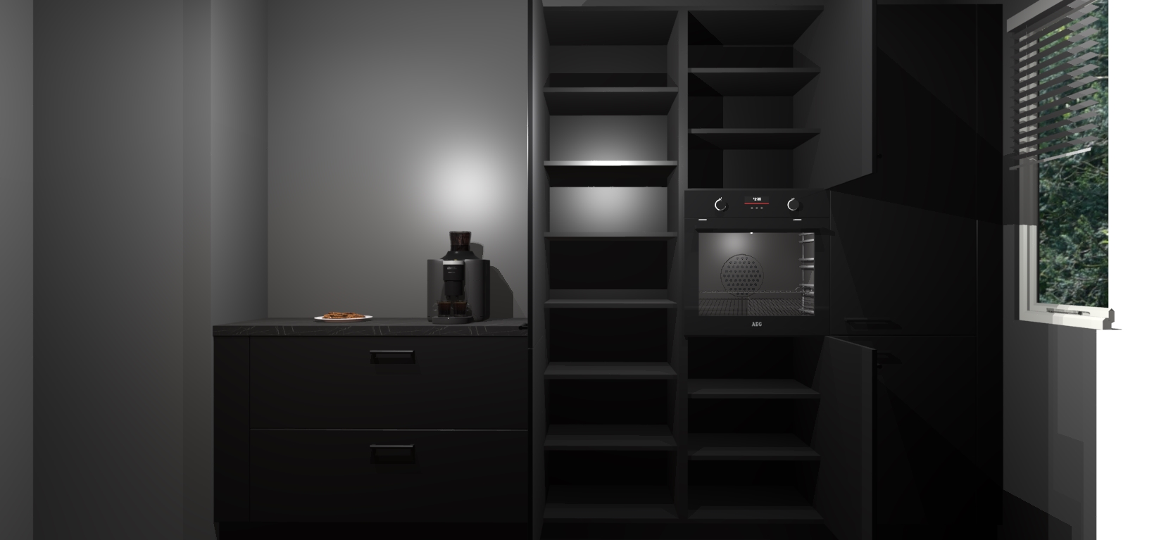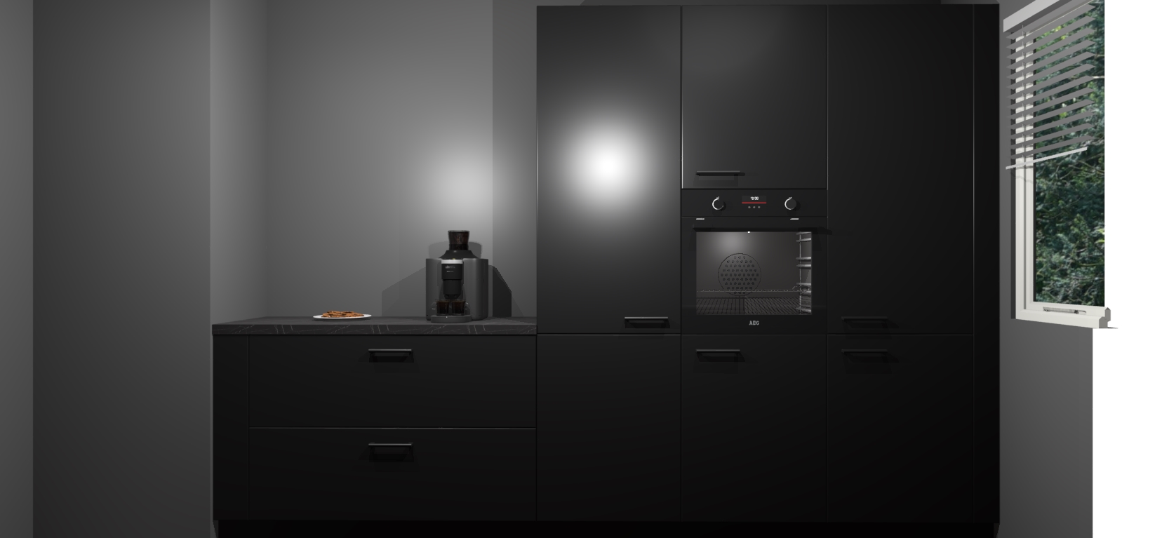 Een stijlvolle en praktische keuken als deze mag gezien worden. Dankzij de prachtige Zwarte matte afwerking wordt de keuken gemakkelijk het middelpunt van uw huis - hij ziet er geweldig uit onder allerlei lichtomstandigheden, van dag tot nacht!