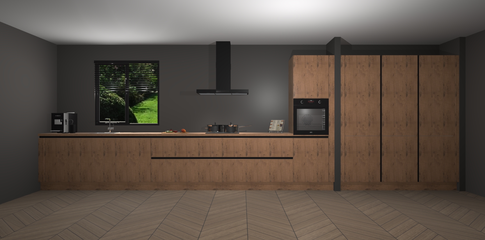 Een stijlvolle en praktische keuken als deze mag gezien worden. Dankzij de prachtige matte afwerking wordt de keuken gemakkelijk het middelpunt van uw huis - hij ziet er geweldig uit onder allerlei lichtomstandigheden, van dag tot nacht!