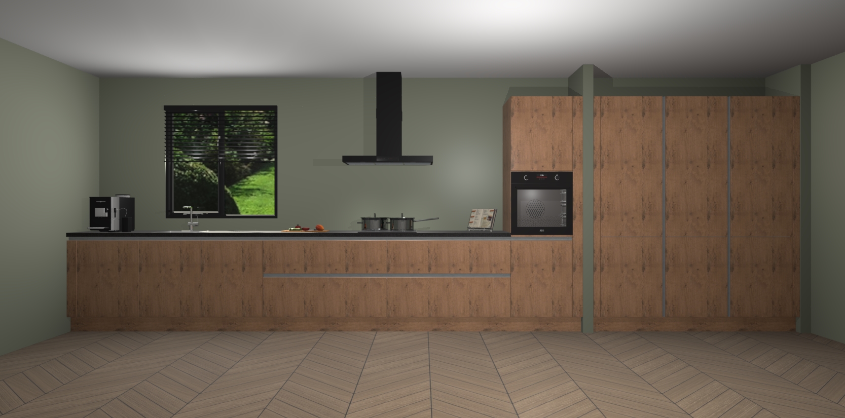 Een stijlvolle en praktische keuken als deze mag gezien worden. Dankzij de prachtige matte afwerking wordt de keuken gemakkelijk het middelpunt van uw huis - hij ziet er geweldig uit onder allerlei lichtomstandigheden, van dag tot nacht!