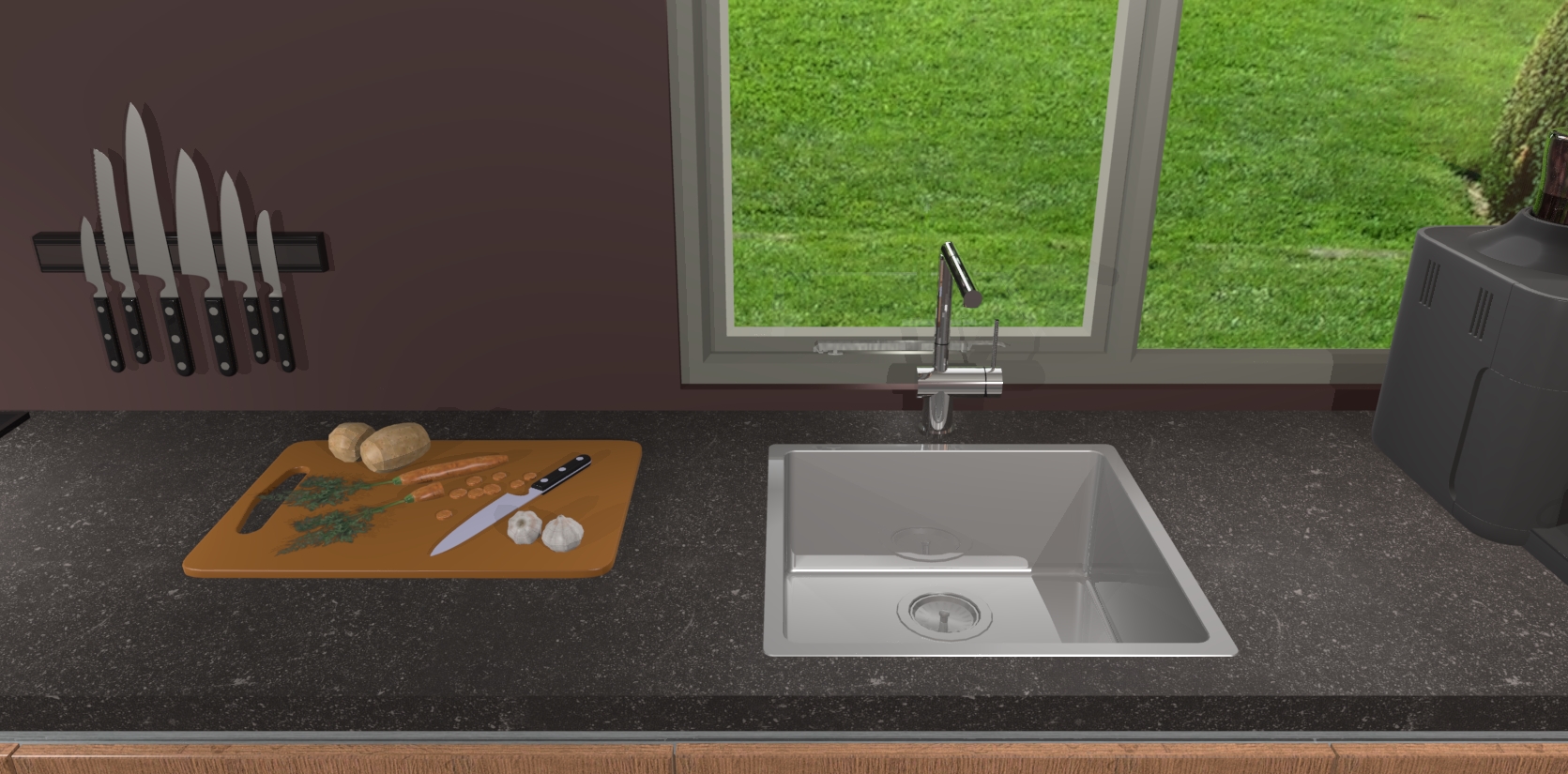 • De spoelbak is nog niet in gevreesd. Dit dient tijdens het werk gedaan te worden
