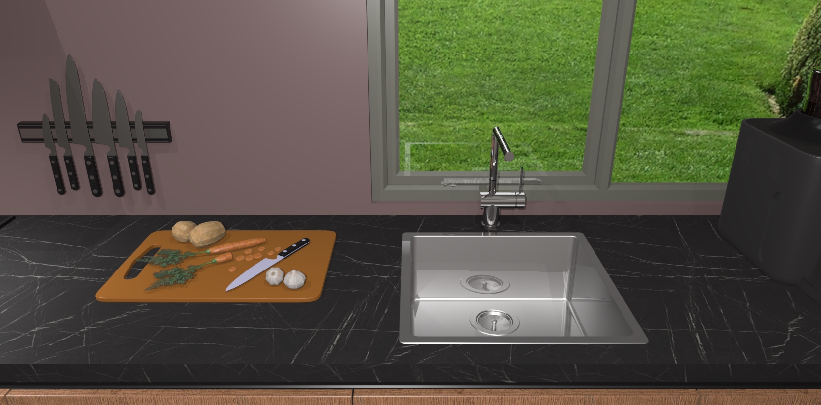- De spoelbak is nog niet in gevreesd. Dit dient tijdens het werk gedaan te worden