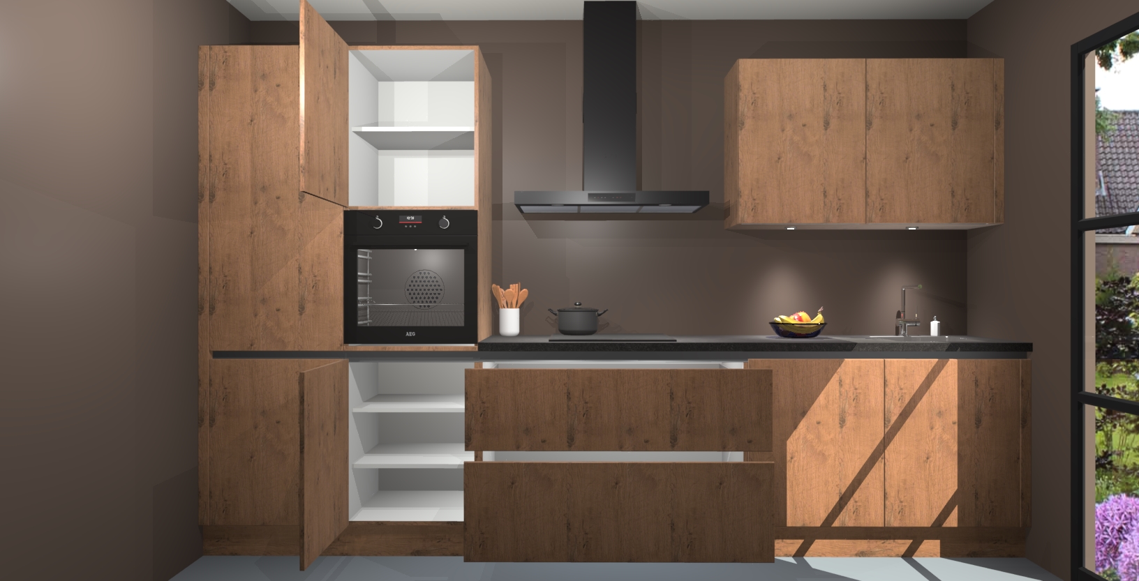 Bovendien is er veel opbergruimte met deze pracht keuken, zodat u ervoor kunt zorgen dat uw kasten en lades altijd georganiseerd zijn - iets wat iedereen waardeert in een drukke keuken. Niemand houdt van een lawaaierige keuken als u de deuren opent en sluit; dankzij de soft close technologie gaat het openen en sluiten van de deuren geruisloos! Bovendien krijgt u de levering binnen 7 weken - hoe geweldig is dat?