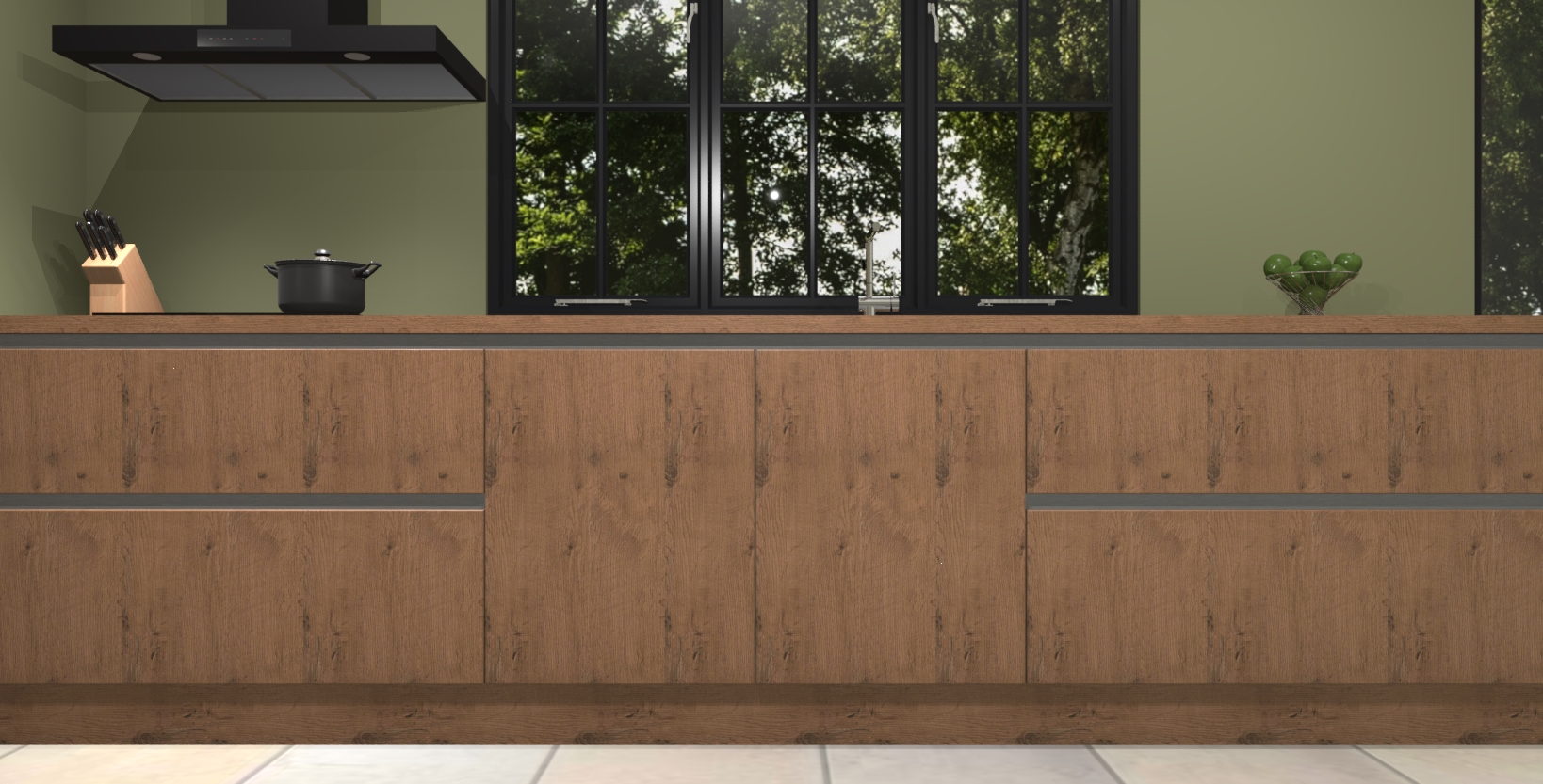 De softclose deuren openen en sluiten is ook heel eenvoudig - geniet van een moeiteloze keukenervaring, zelfs als er kinderen rondlopen. Voor extra gemak bij het plaatsen van uw bestelling bieden we ook een upgrade naar een kookplaat met geïntegreerde afzuiging.