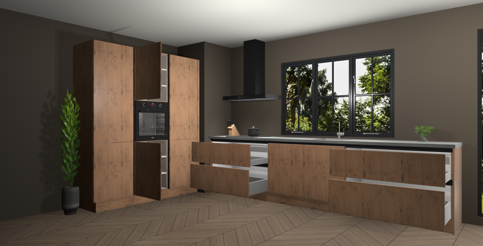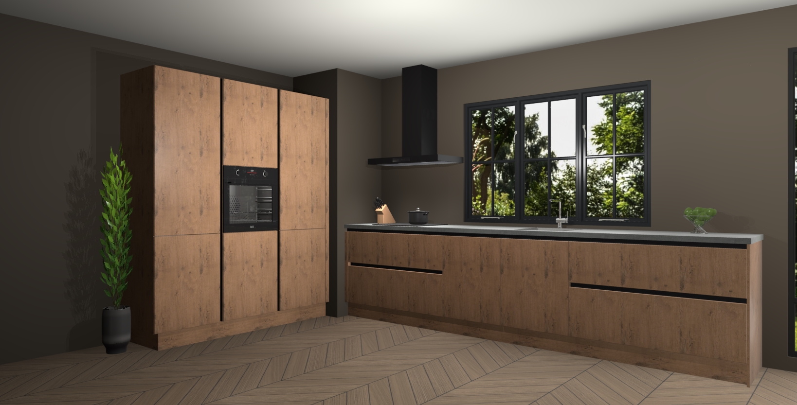 De Astoria eiken keuken Marseille, een mooie en verbluffende toevoeging aan uw keuken, is een kunstwerk met zijn luxe design en unieke combinatie van Astoria eiken met een houten blad. Geniet van eersteklas vakmanschap dat zorgt voor jarenlange betrouwbaarheid in een strak Europees hedendaags ontwerp.
