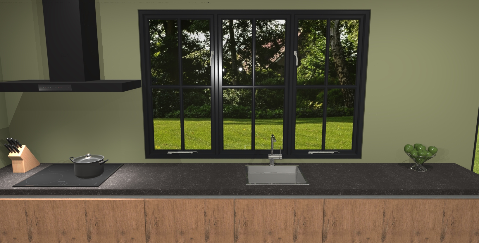 De softclose deuren openen en sluiten is ook heel eenvoudig - geniet van een moeiteloze keukenervaring, zelfs als er kinderen rondlopen. Voor extra gemak bij het plaatsen van uw bestelling bieden we ook een upgrade naar een kookplaat met geïntegreerde afzuiging.