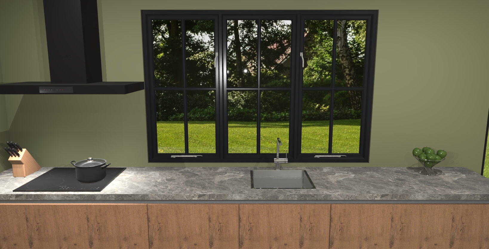 De softclose deuren openen en sluiten is ook heel eenvoudig - geniet van een moeiteloze keukenervaring, zelfs als er kinderen rondlopen. Voor extra gemak bij het plaatsen van uw bestelling bieden we ook een upgrade naar een kookplaat met geïntegreerde afzuiging.