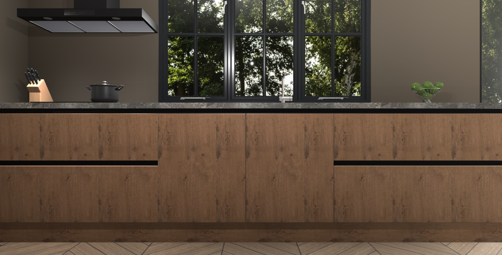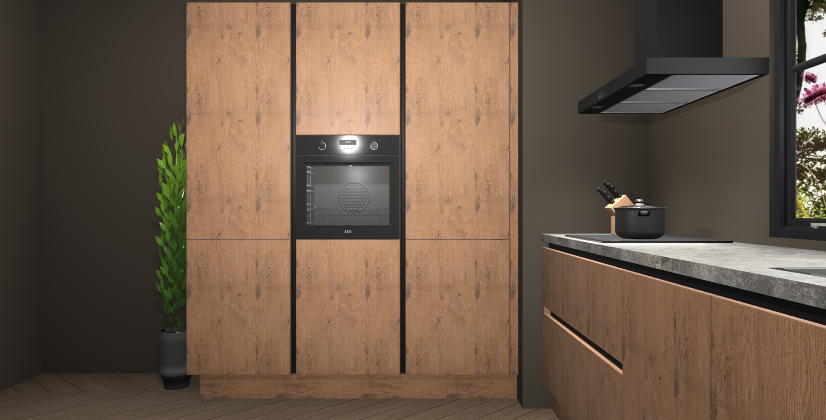 De softclose deuren openen en sluiten is ook heel eenvoudig - geniet van een moeiteloze keukenervaring, zelfs als er kinderen rondlopen. Voor extra gemak bij het plaatsen van uw bestelling bieden we ook een upgrade naar een kookplaat met geïntegreerde afzuiging.