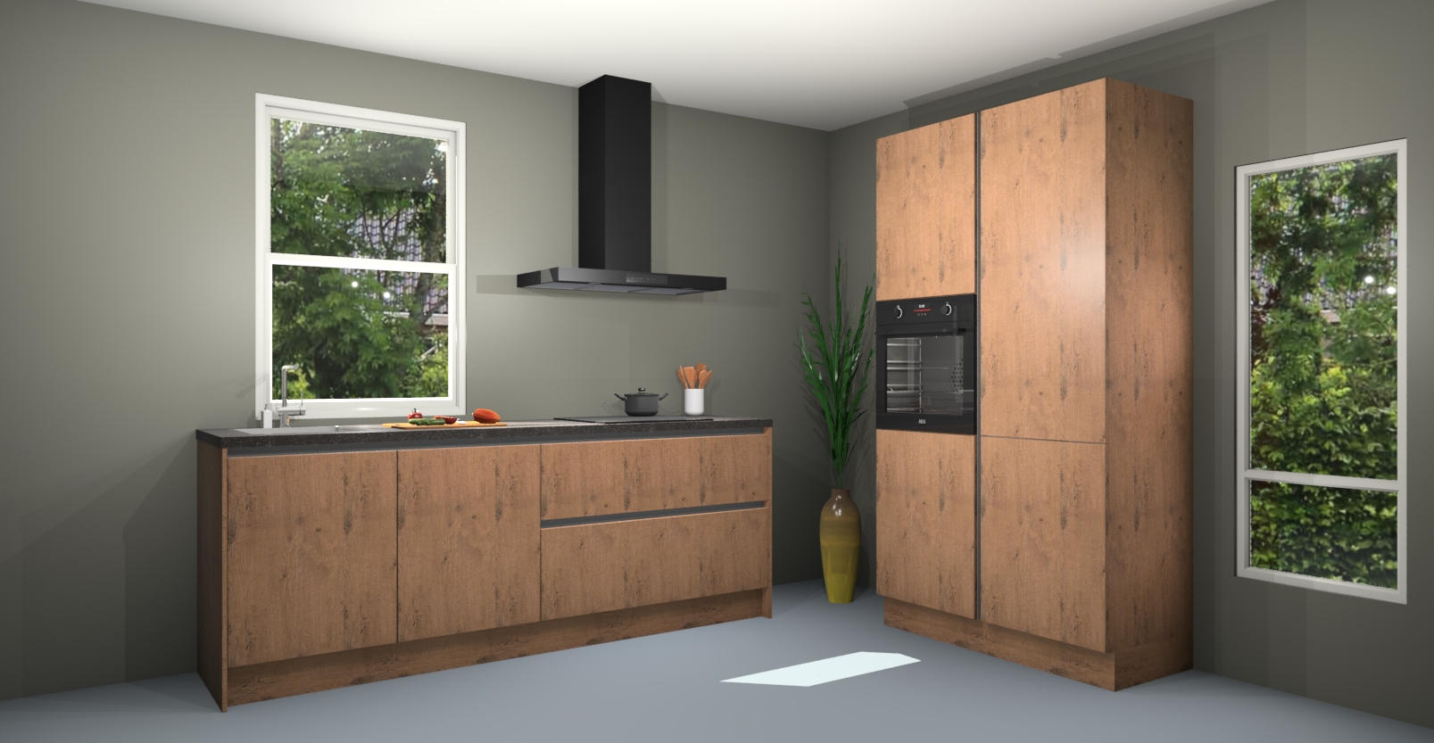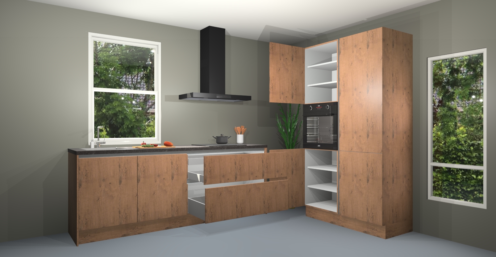 De Astoria eiken greeploze keuken Monaco heeft voldoende opbergruimte om uw keukenbenodigdheden georganiseerd en netjes te houden. Geniet van het gemak van de soft-close deuren, die deze stijlvolle look perfect afmaken. Maar dat is nog niet alles. Met de Astoria eiken greeploze keuken Monaco krijgt u maar liefst 5 ingebouwde apparaten: een oven, inductiekookplaat, afzuigkap, vaatwasser en koelkast. Deze kunnen gemakkelijk worden geüpgraded naar AEG als ze besteld zijn.