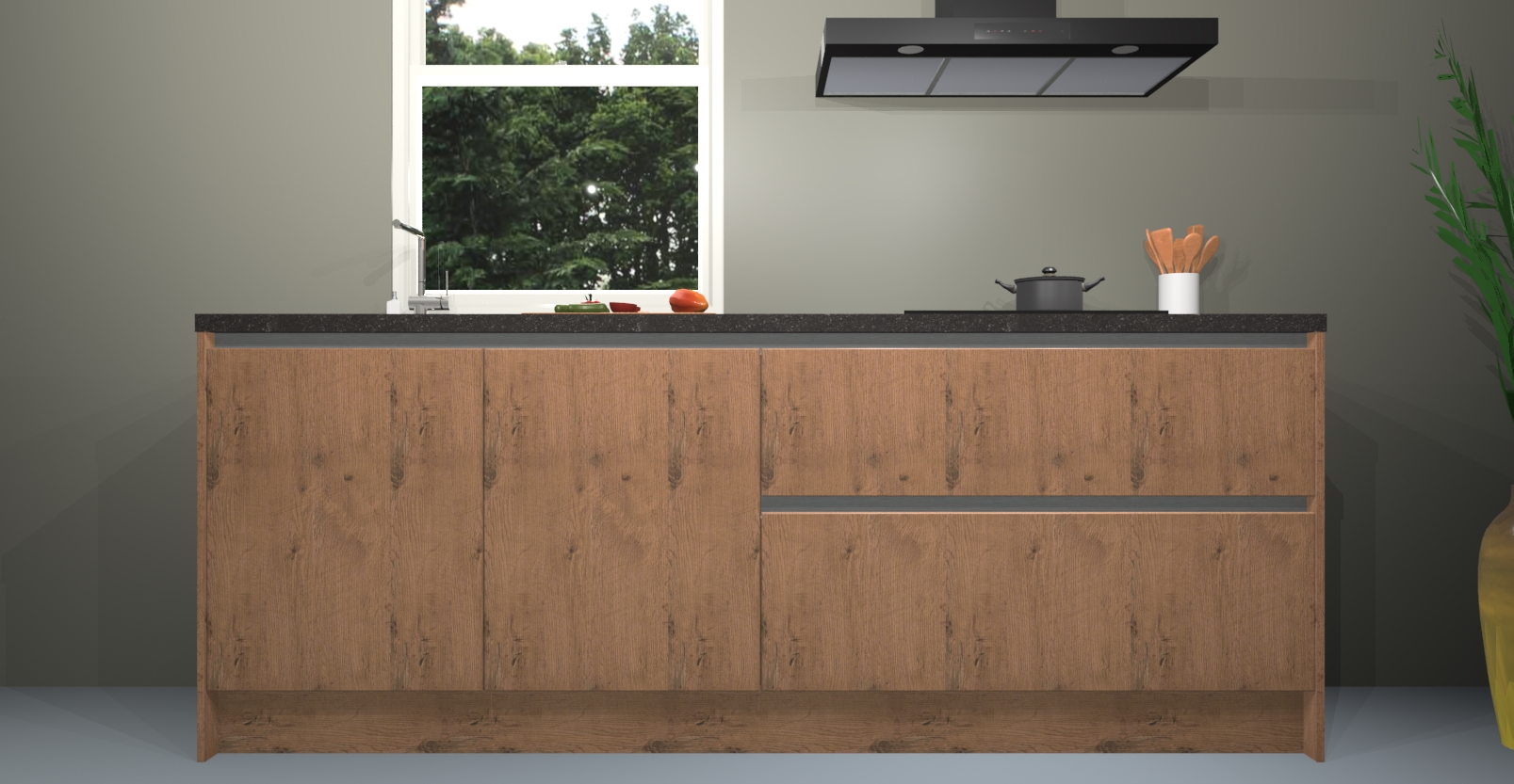 Inclusief plinten, stelpoten en werkblad