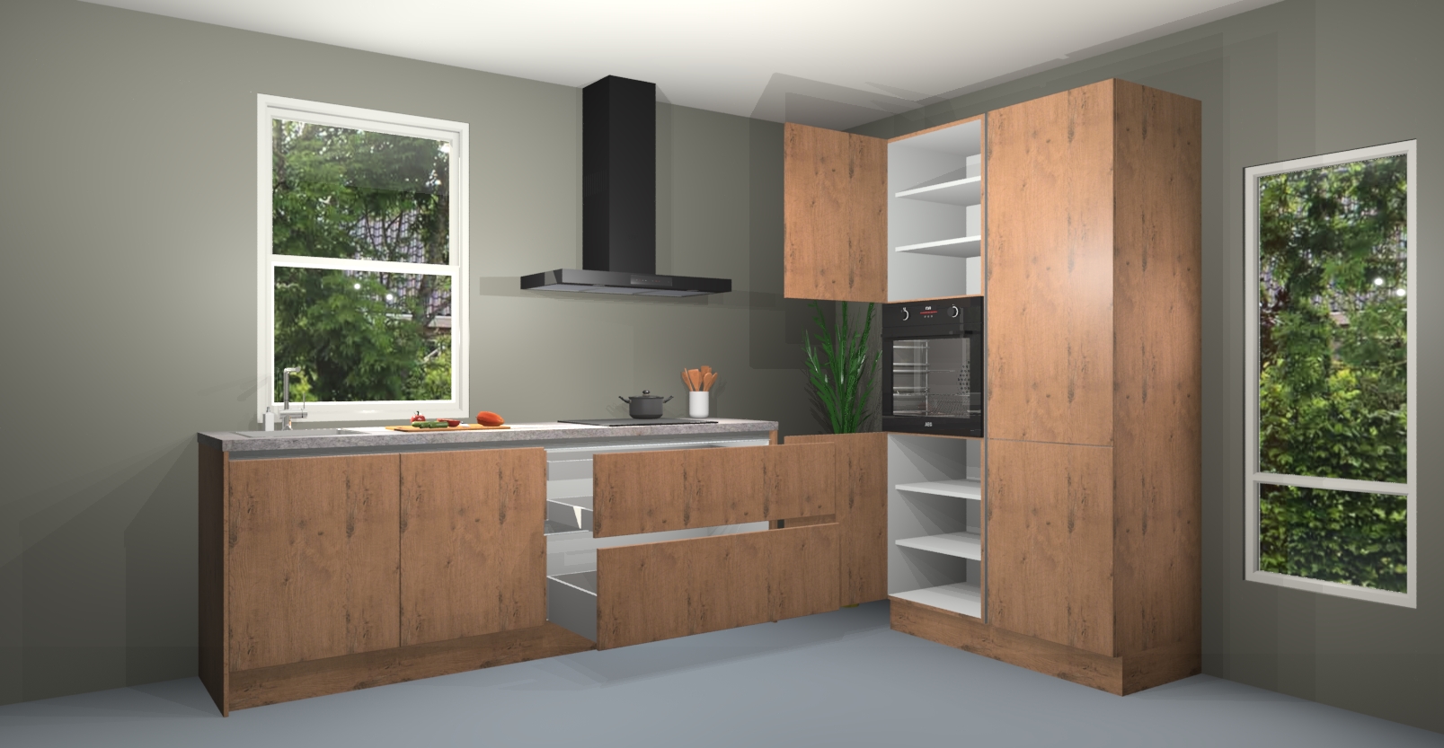 Ervaar het ultieme gevoel van warmte en gezelligheid in uw huis met de luxe Astoria eiken greeploze keuken Monaco! Deze ongelooflijk sfeervolle houtlook straalt heerlijke warmte uit en tovert elke keuken om tot een gezellig familiecentrum. Breng uw dromen tot leven met deze unieke keuken, ontworpen voor moeiteloze luxe en functionaliteit.