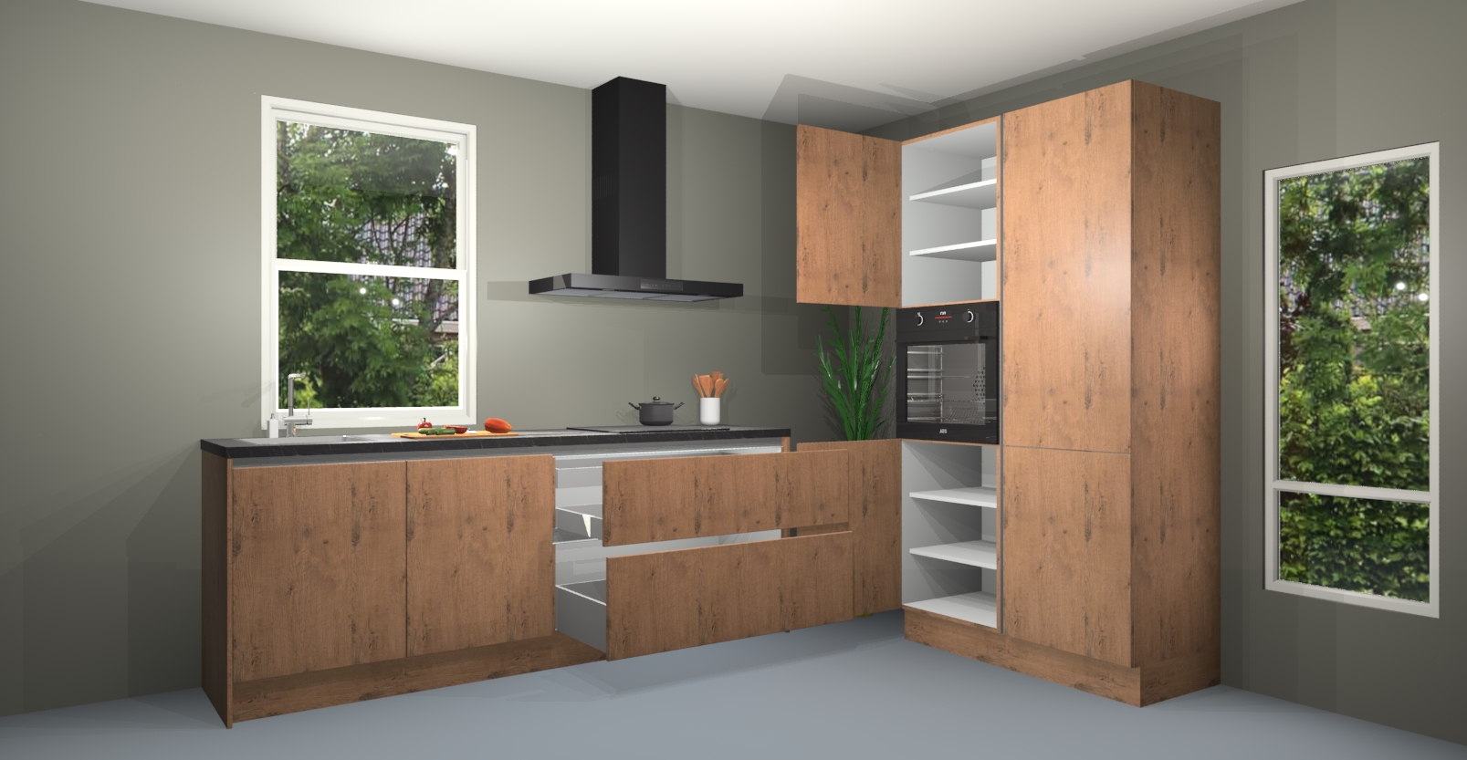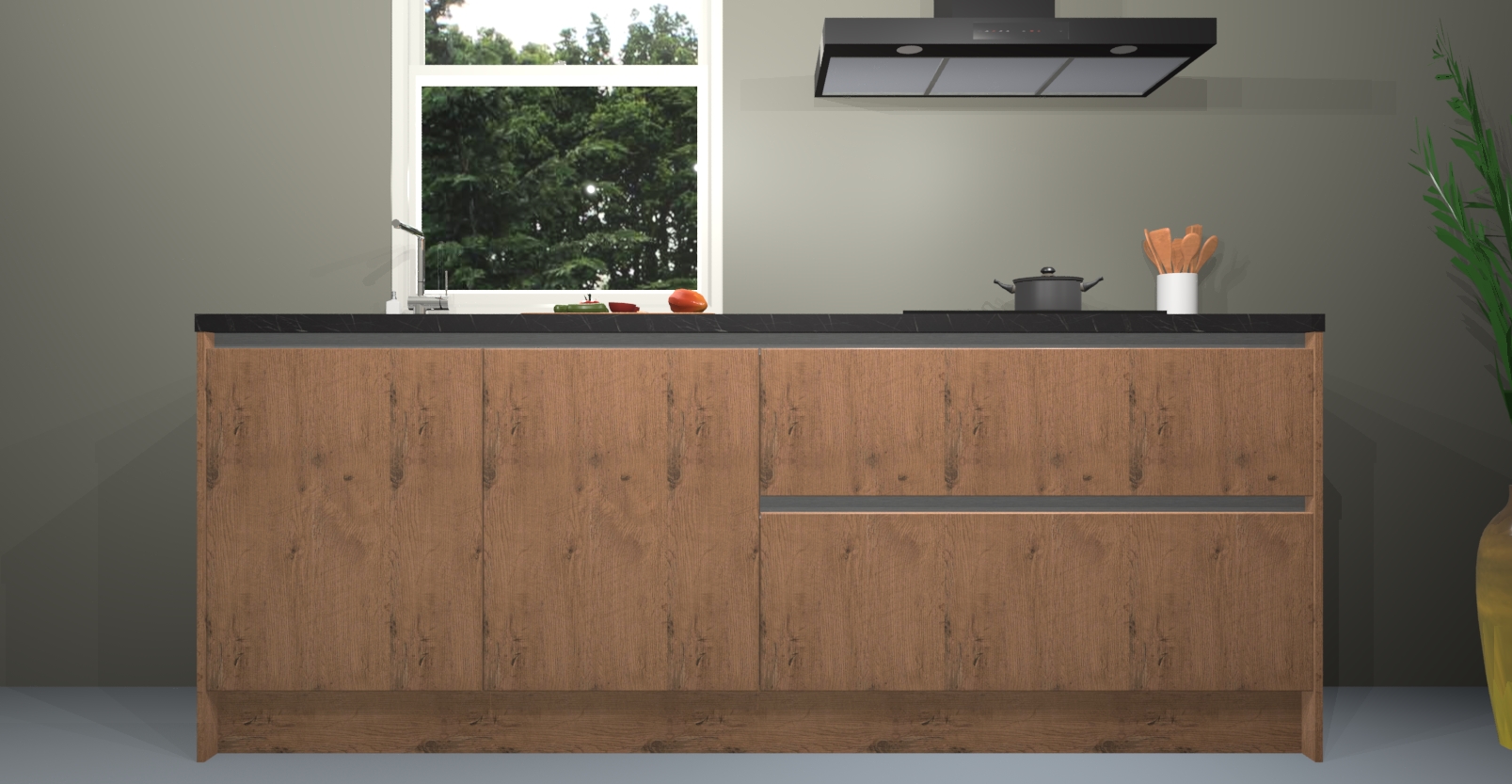 De Astoria eiken greeploze keuken Monaco heeft voldoende opbergruimte om uw keukenbenodigdheden georganiseerd en netjes te houden. Geniet van het gemak van de soft-close deuren, die deze stijlvolle look perfect afmaken. Maar dat is nog niet alles. Met de Astoria eiken greeploze keuken Monaco krijgt u maar liefst 5 ingebouwde apparaten: een oven, inductiekookplaat, afzuigkap, vaatwasser en koelkast. Deze kunnen gemakkelijk worden geüpgraded naar AEG als ze besteld zijn.
