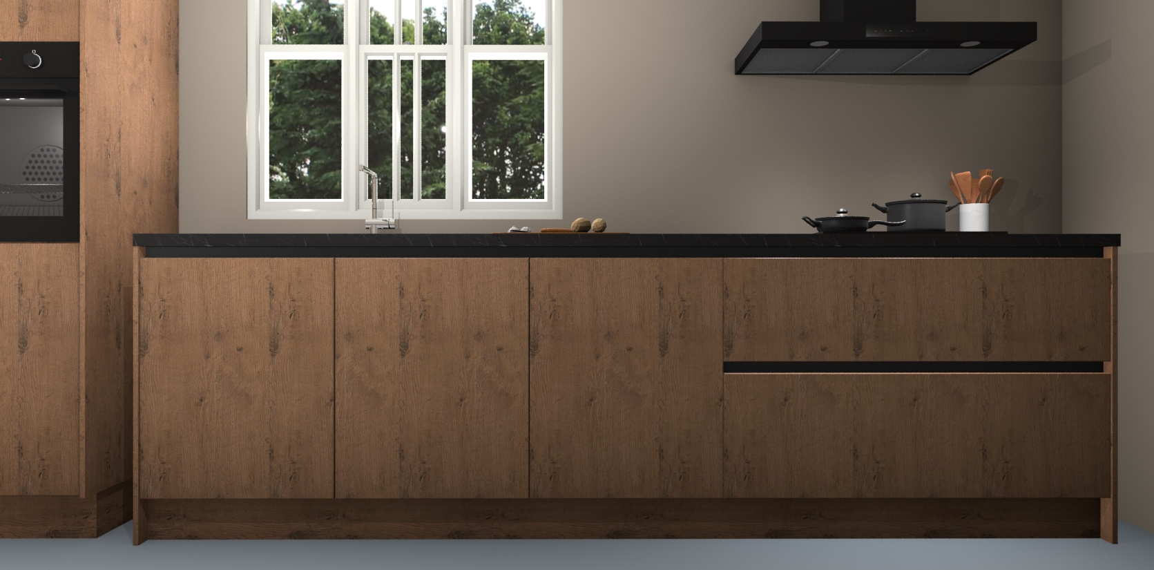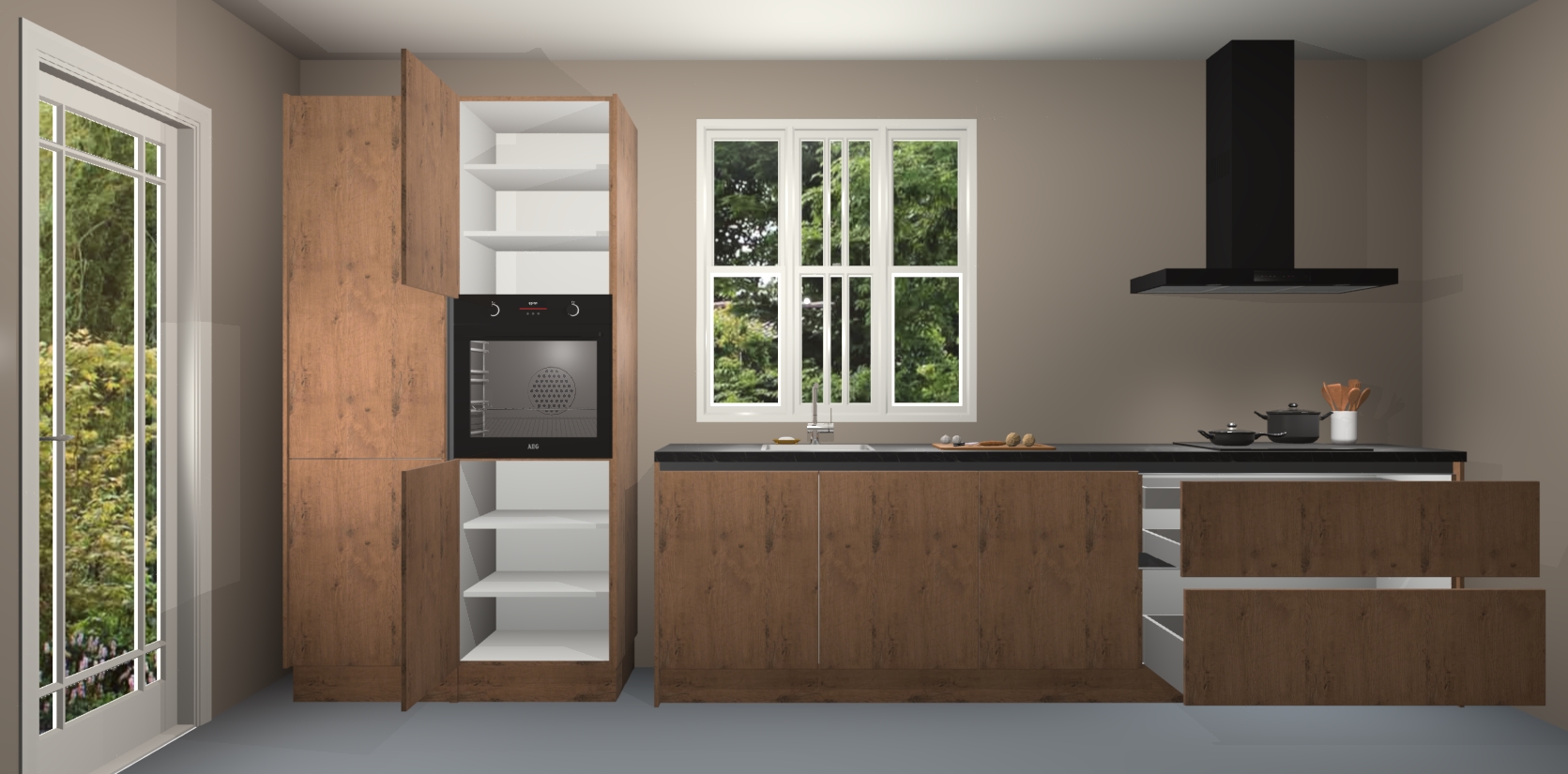 Bovenop de houten look is een overvloed aan ruimte voor het opbergen van alles wat u nodig heeft om een maaltijd te bereiden - van grillen tot bakken. En maakt u zich geen zorgen over te veel lawaai - alle deuren zijn voorzien van een softclosing systeem zodat er geen eten gemorst wordt en geluiden niet door het hele huis galmen.