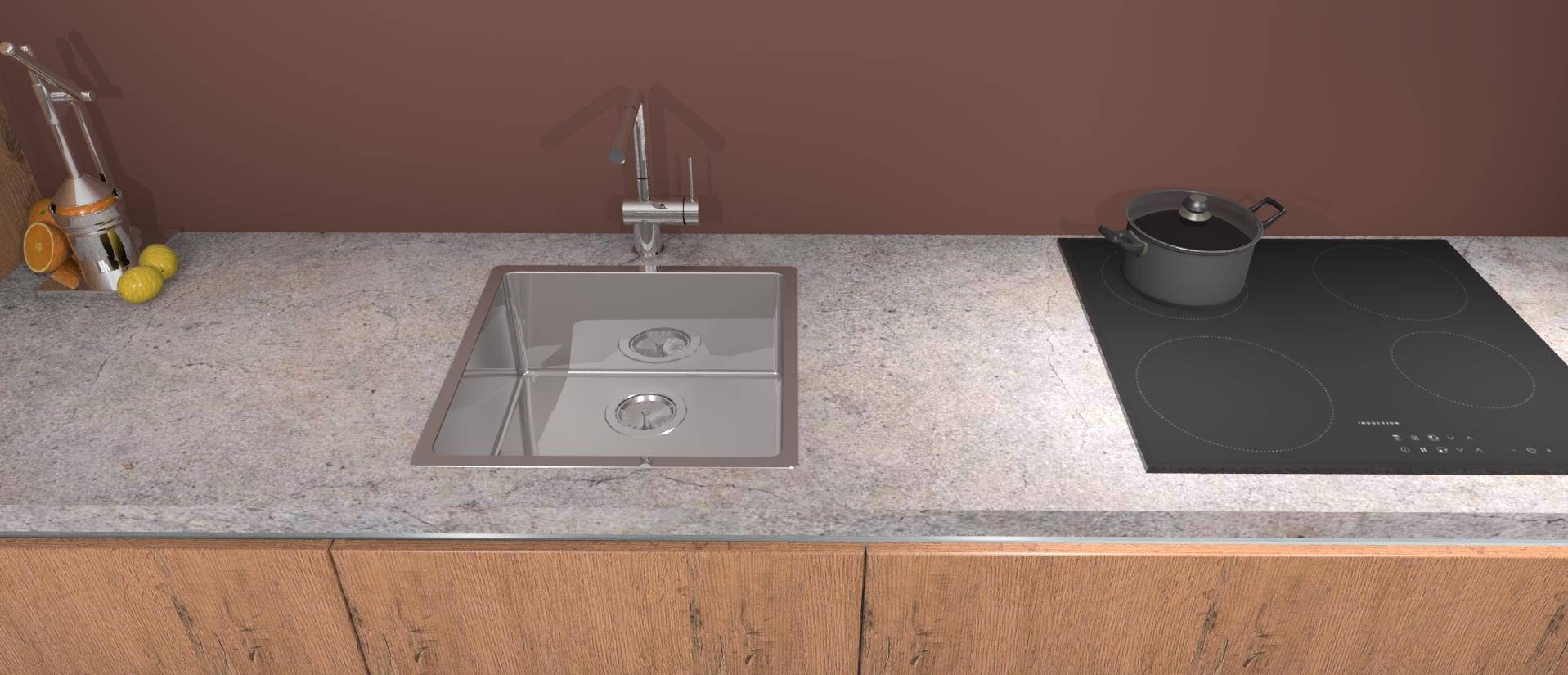 • Uitsparing van kookplaat, spoelbak en kraan dient u zelf te verzorgen.