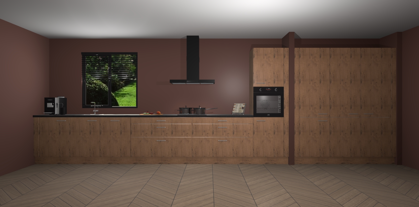 Een stijlvolle en praktische keuken als deze mag gezien worden. Dankzij de prachtige matte afwerking wordt de keuken gemakkelijk het middelpunt van uw huis - hij ziet er geweldig uit onder allerlei lichtomstandigheden, van dag tot nacht!