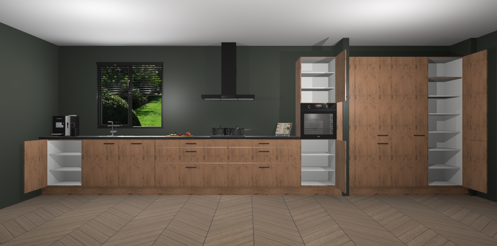 Een stijlvolle en praktische keuken als deze mag gezien worden. Dankzij de prachtige matte afwerking wordt de keuken gemakkelijk het middelpunt van uw huis - hij ziet er geweldig uit onder allerlei lichtomstandigheden, van dag tot nacht!