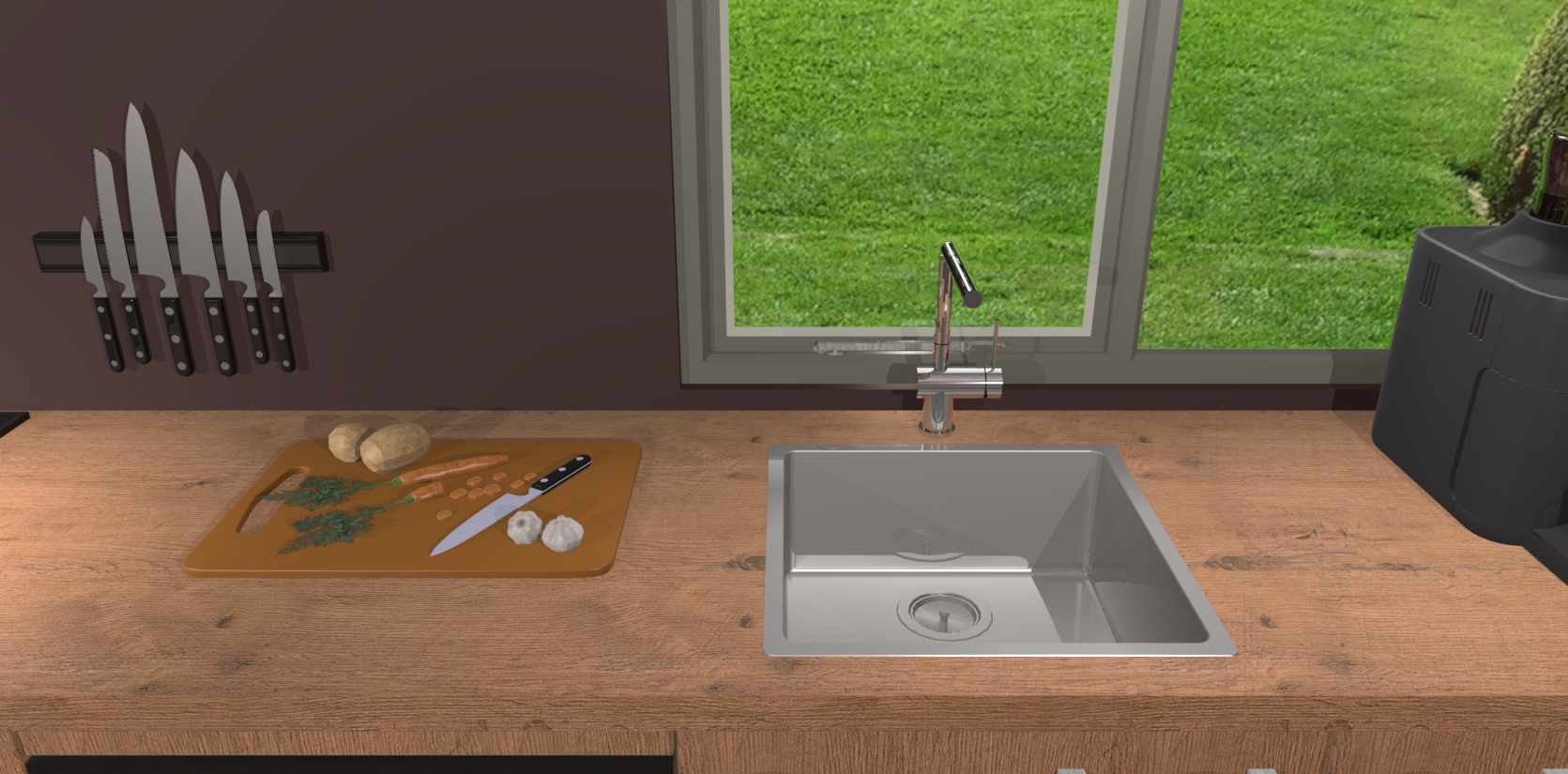 • De spoelbak is nog niet in gevreesd. Dit dient tijdens het werk gedaan te worden