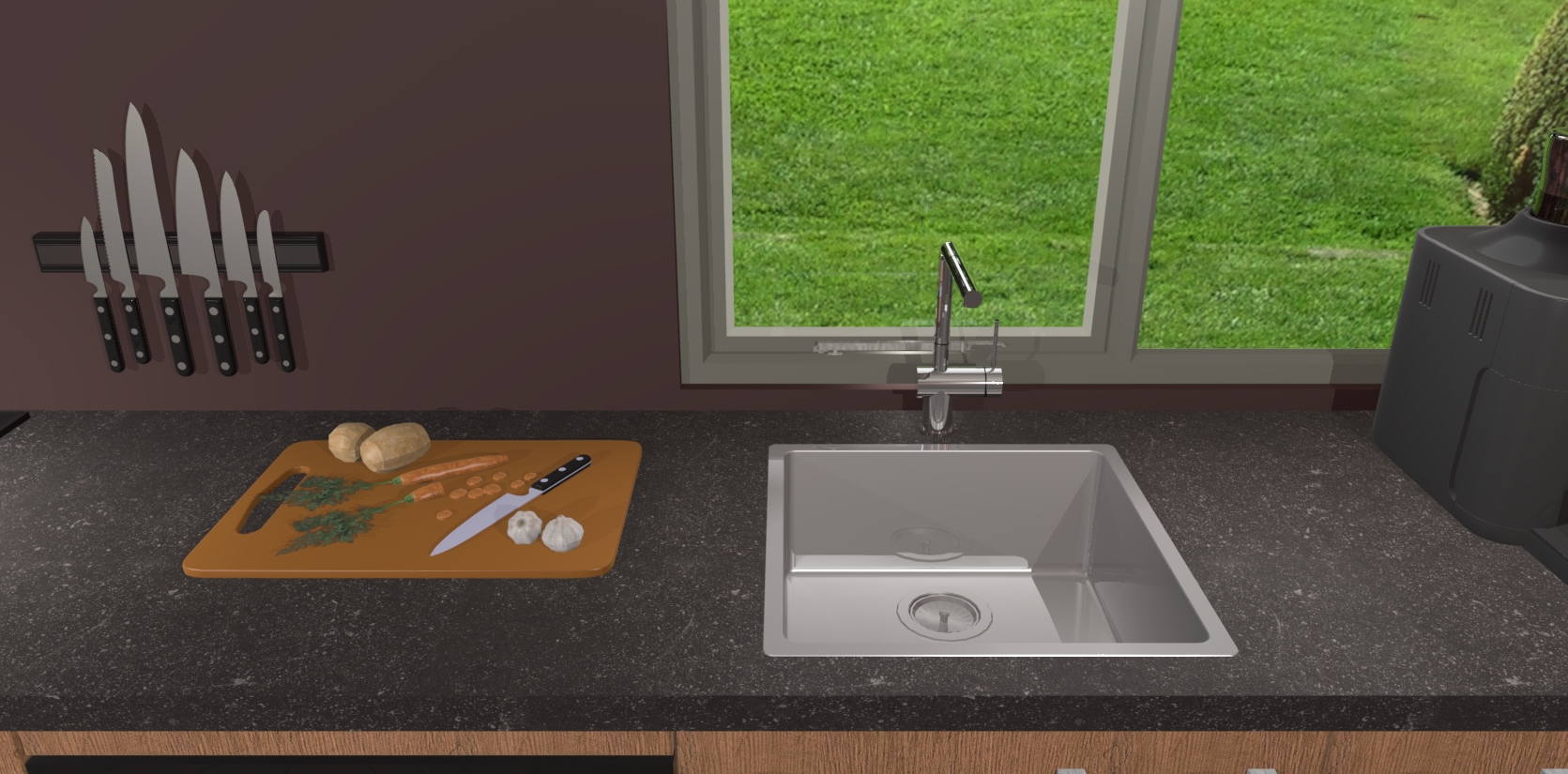 - De spoelbak is nog niet in gevreesd. Dit dient tijdens het werk gedaan te worden
