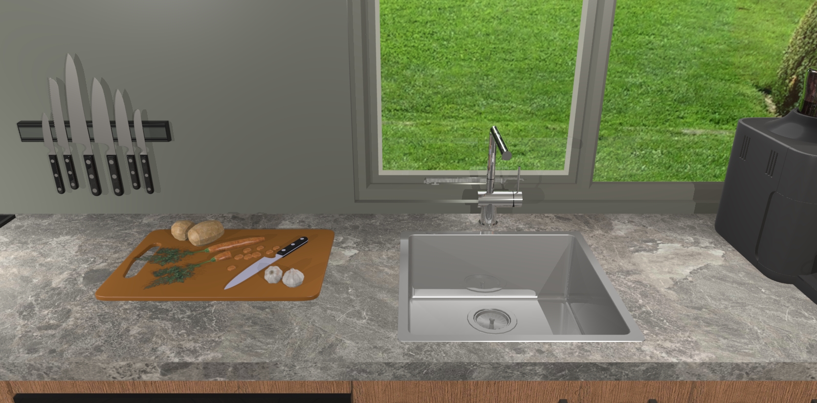 • De spoelbak is nog niet in gevreesd. Dit dient tijdens het werk gedaan te worden