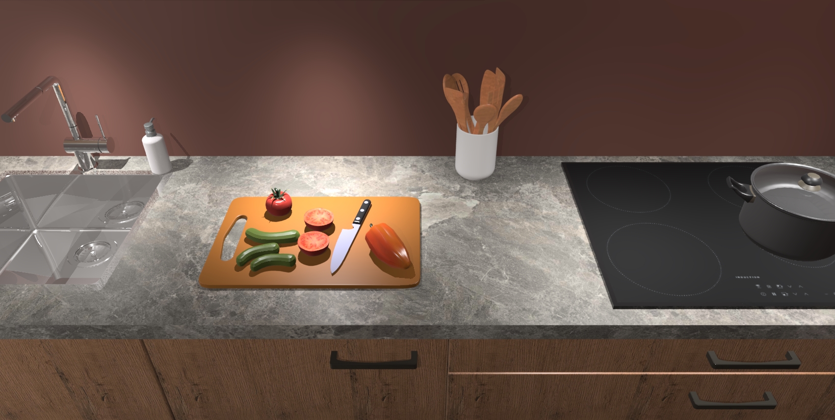 - Uitsparing van kookplaat, spoelbak en kraan dient u zelf te verzorgen.