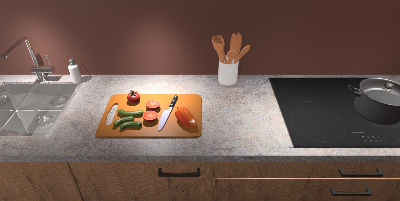 - Uitsparing van kookplaat, spoelbak en kraan dient u zelf te verzorgen.
