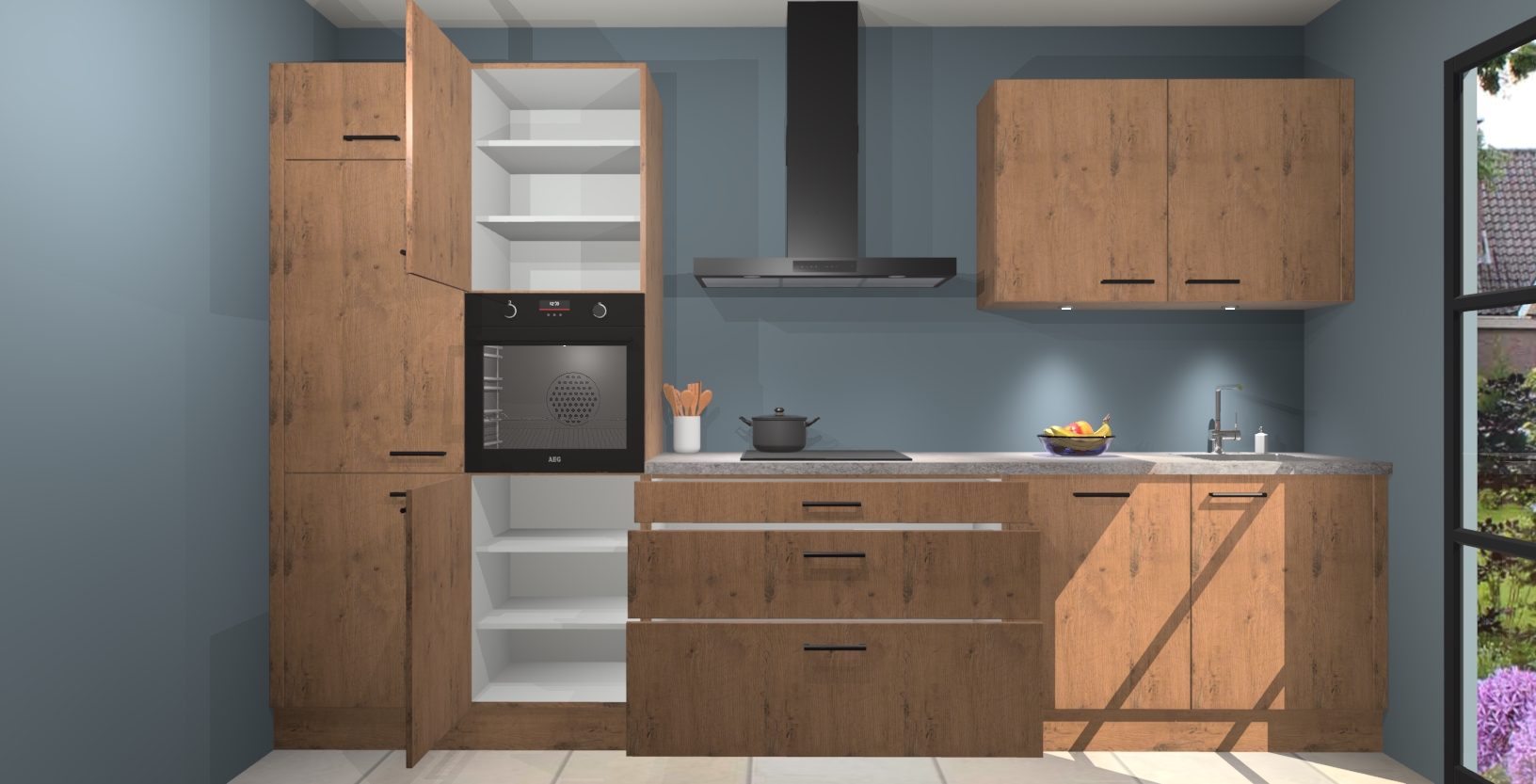 Bovendien is er veel opbergruimte met deze pracht keuken, zodat u ervoor kunt zorgen dat uw kasten en lades altijd georganiseerd zijn - iets wat iedereen waardeert in een drukke keuken. Niemand houdt van een lawaaierige keuken als u de deuren opent en sluit; dankzij de soft close technologie gaat het openen en sluiten van de deuren geruisloos! Bovendien krijgt u de levering binnen 7 weken - hoe geweldig is dat?