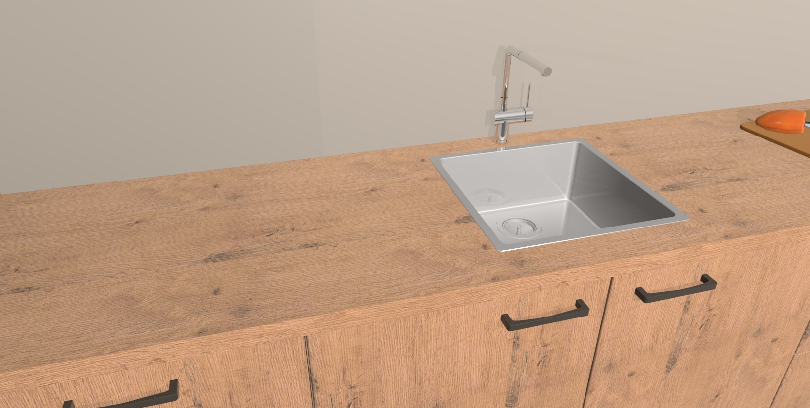 - De spoelbak is nog niet in gevreesd. Dit dient tijdens het werk gedaan te worden