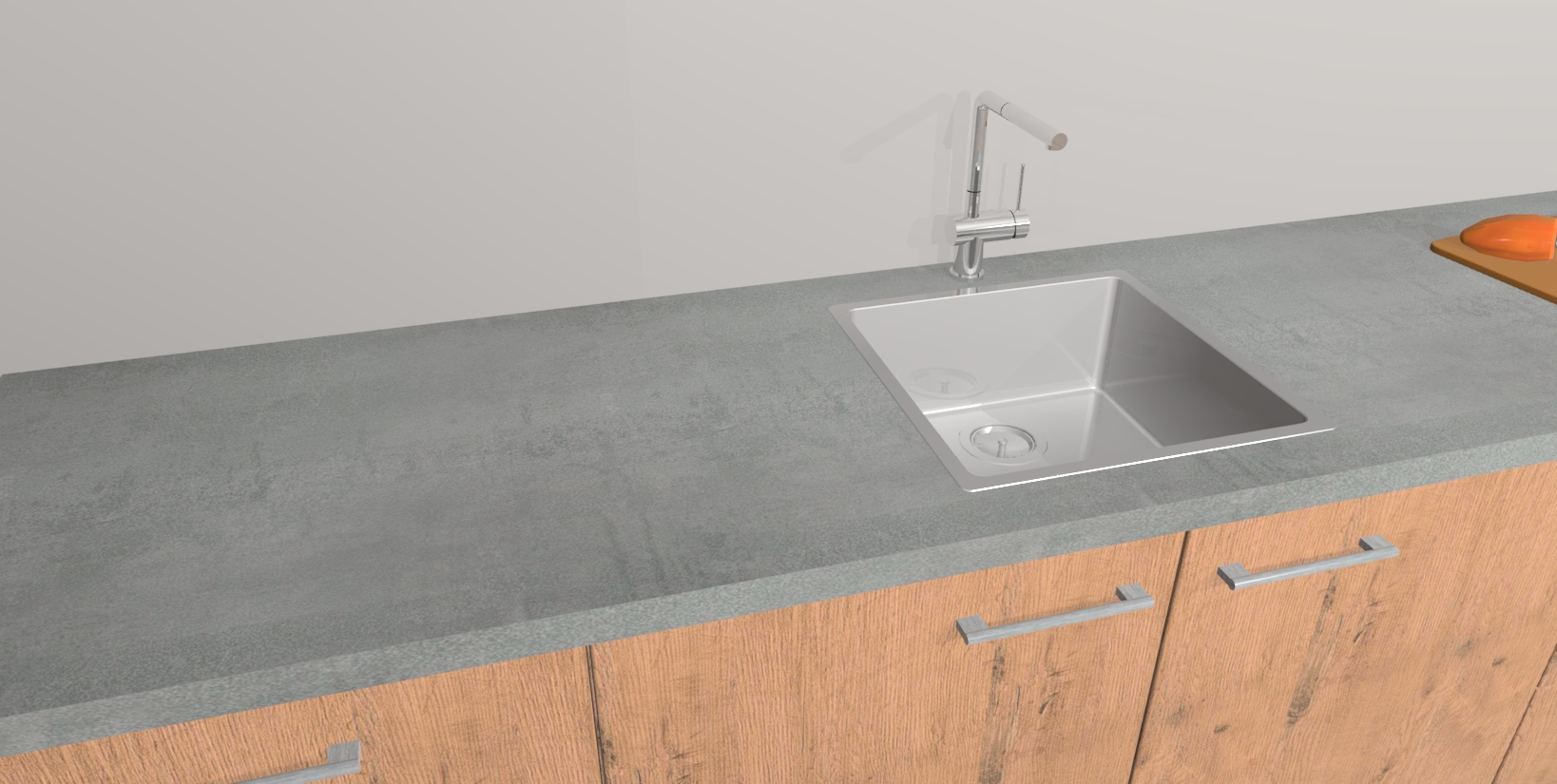 - De spoelbak is nog niet in gevreesd. Dit dient tijdens het werk gedaan te worden