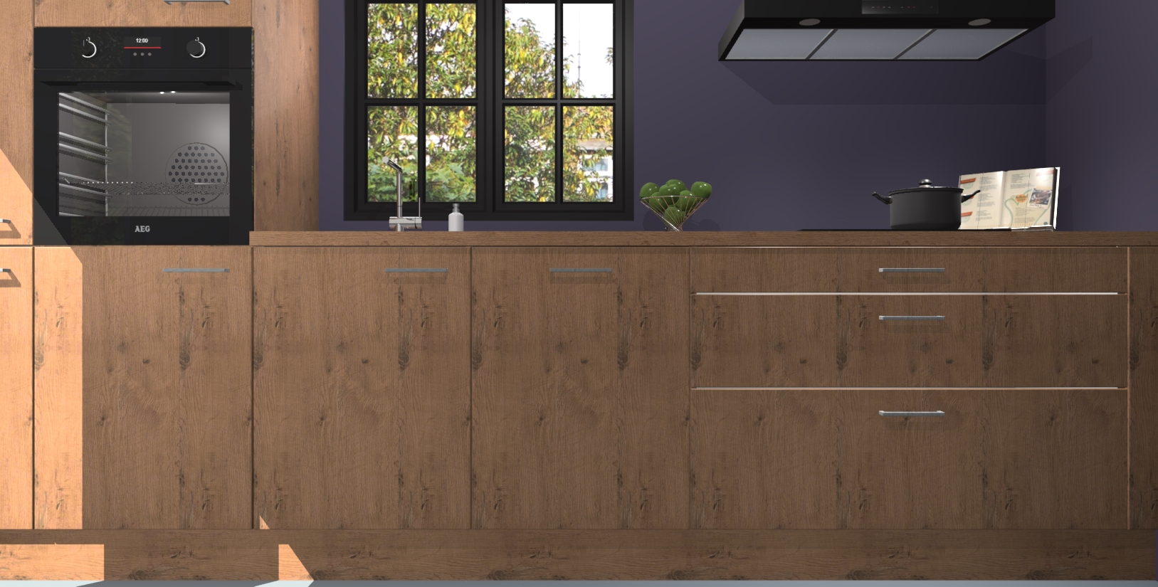 Maak kennis met de Astoria eiken keuken Brussel! Een echt boeiend keukendesign dat gezelligheid en warmte uitstraalt! Met deze uitstekende afwerking in houtlook wilt u uw keuken nooit meer uit.