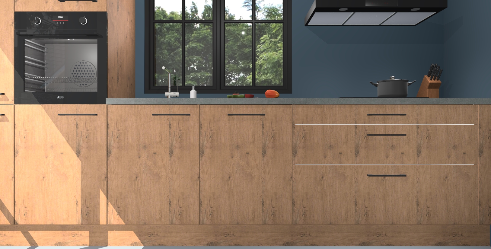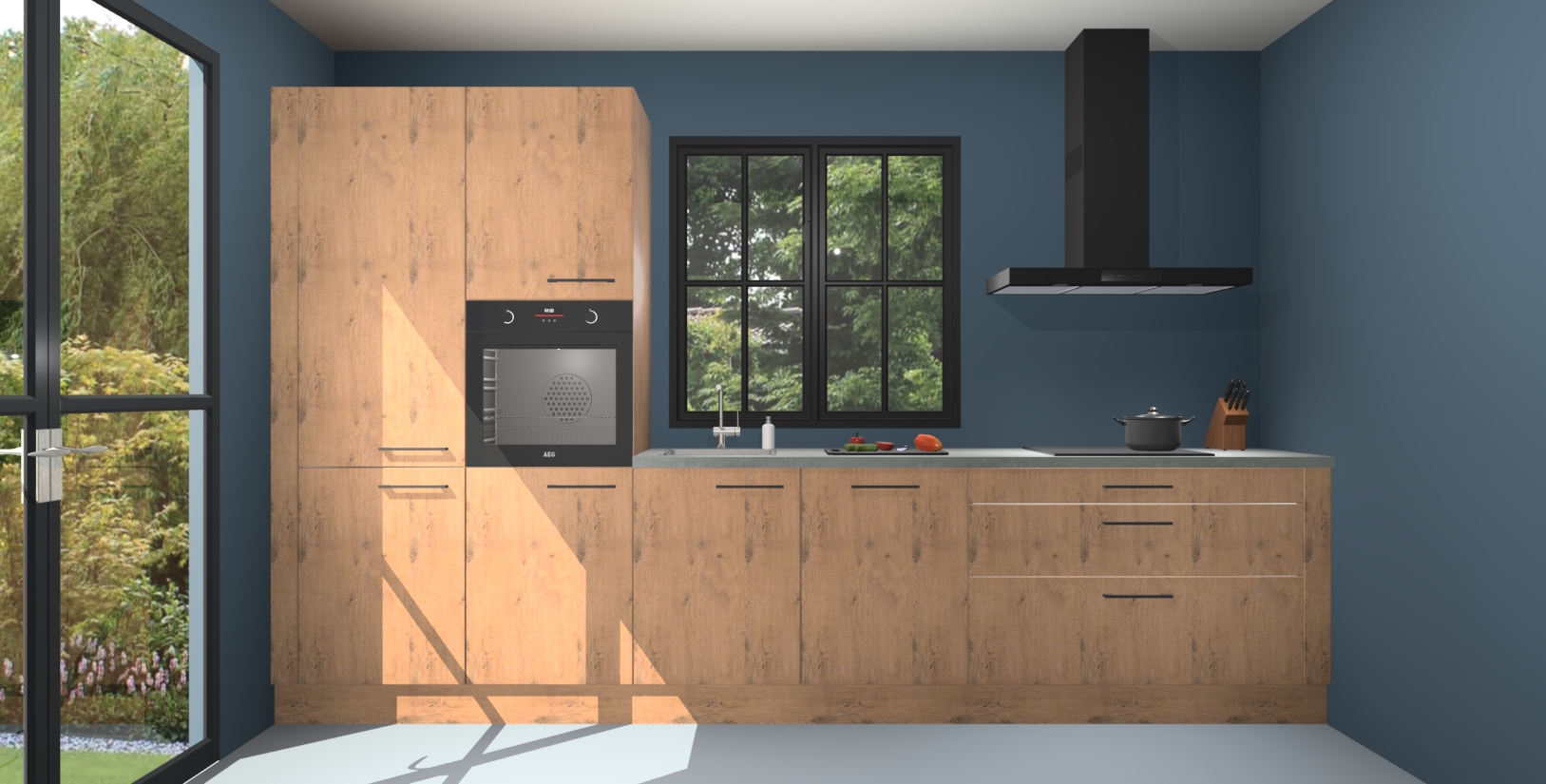 Welkom in de wereld van luxe koken en stijlvol modern design met de Astoria eiken keuken Brussel. Als u er al lang van droomt om thuis de perfecte keuken te hebben, dan is dit uw kans! Onze grote luxe keuken biedt u veel opbergruimte en bevat 5 inbouwapparaten zoals een oven, inductiekookplaat, afzuigkap, vaatwasser en koelkast. Deze kunt u na het plaatsen van uw bestelling eenvoudig upgraden naar AEG.