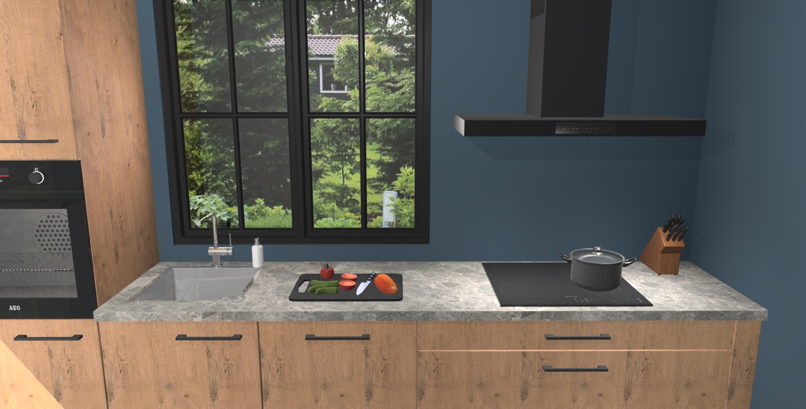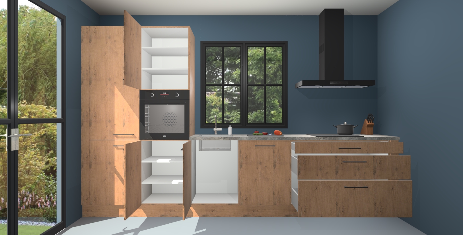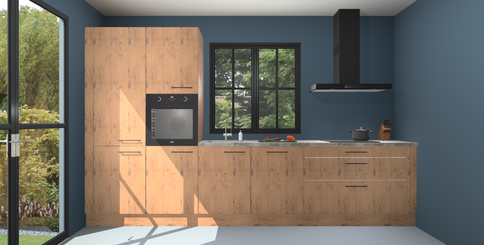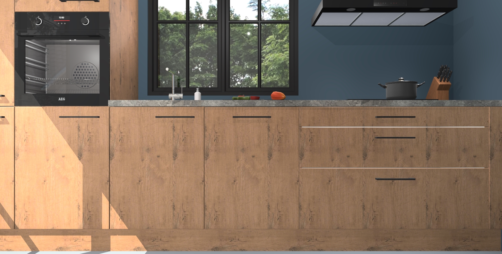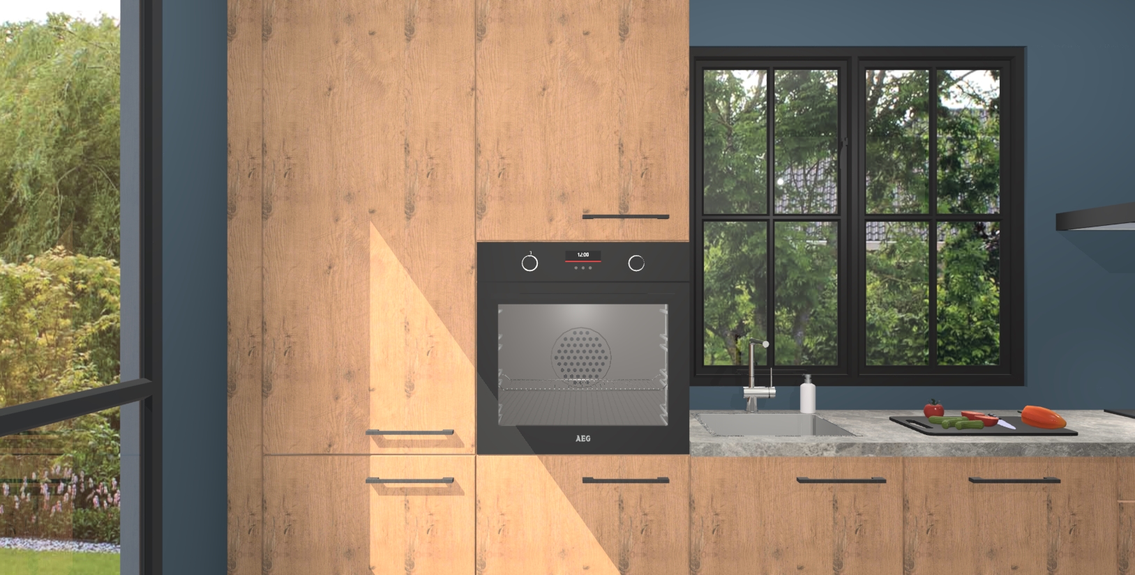 Welkom in de wereld van luxe koken en stijlvol modern design met de Astoria eiken keuken Brussel. Als u er al lang van droomt om thuis de perfecte keuken te hebben, dan is dit uw kans! Onze grote luxe keuken biedt u veel opbergruimte en bevat 5 inbouwapparaten zoals een oven, inductiekookplaat, afzuigkap, vaatwasser en koelkast. Deze kunt u na het plaatsen van uw bestelling eenvoudig upgraden naar AEG.