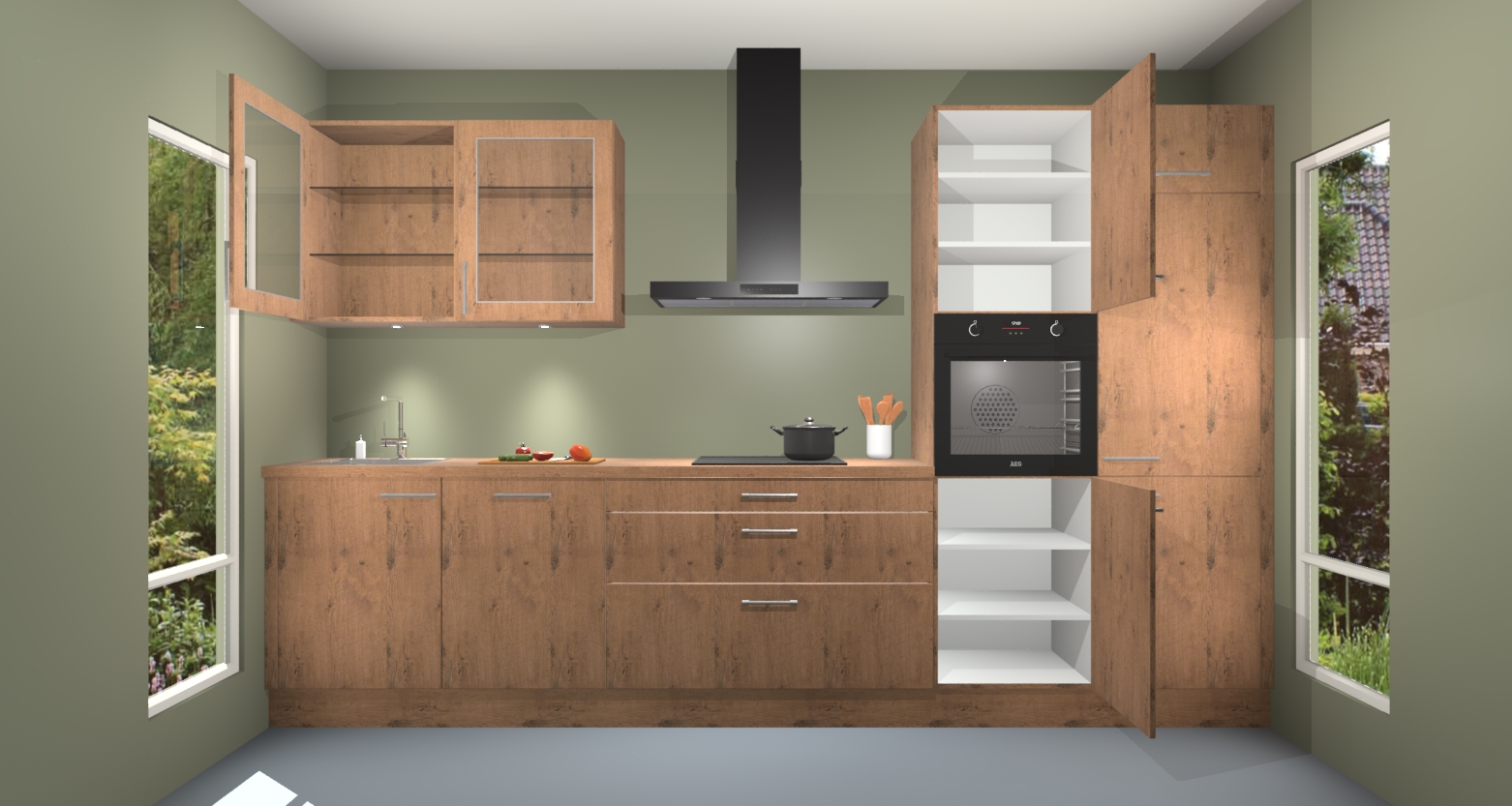 De astoria eiken keuken Cairo is de perfecte mix van modern en tijdloos design. Met zijn prachtige glazen deuren op de bovenkastjes voegt hij echt iets speciaals en unieks toe aan elke keuken. En met vijf ingebouwde apparaten inbegrepen - een oven, inductiekookplaat, afzuigkap, vaatwasser en koelkast - kunt u deze keuken echt helemaal van uzelf maken! U kunt na bestelling ook upgraden naar AEG voor een nog hogere kwaliteitservaring.