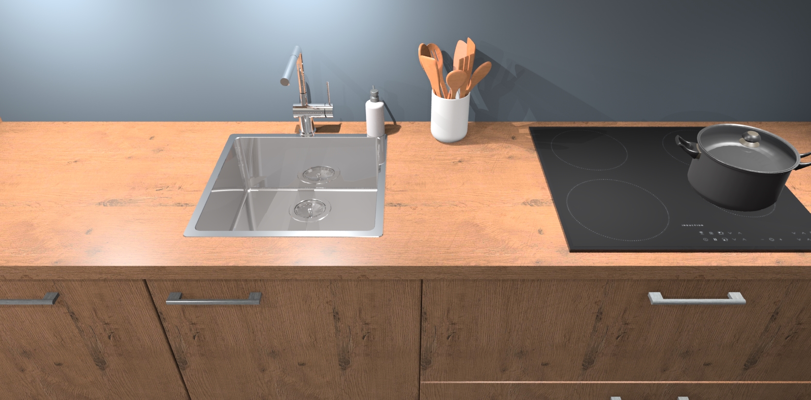 - Uitsparing van kookplaat, spoelbak en kraan dient u zelf te verzorgen.