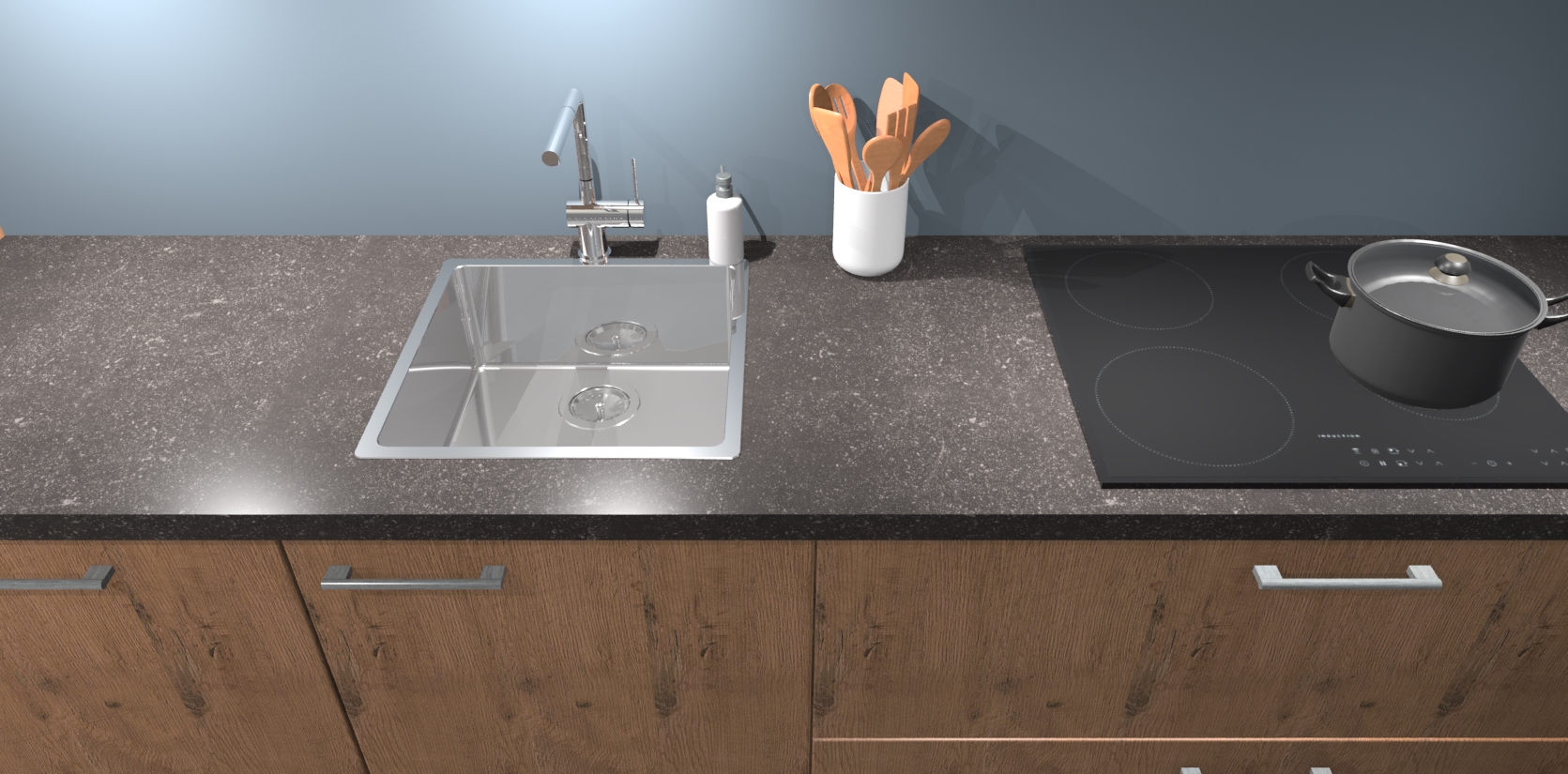 - Uitsparing van kookplaat, spoelbak en kraan dient u zelf te verzorgen.