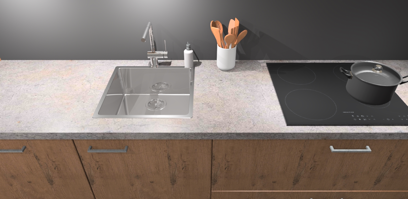 - Uitsparing van kookplaat, spoelbak en kraan dient u zelf te verzorgen.