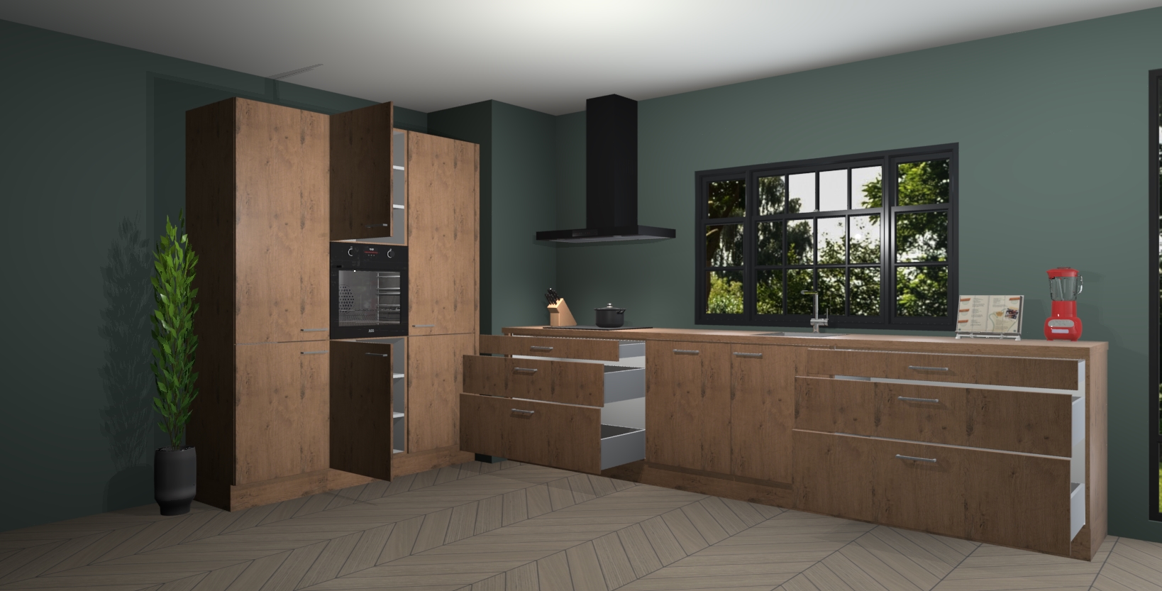 Inclusief plinten, stelpoten en werkblad