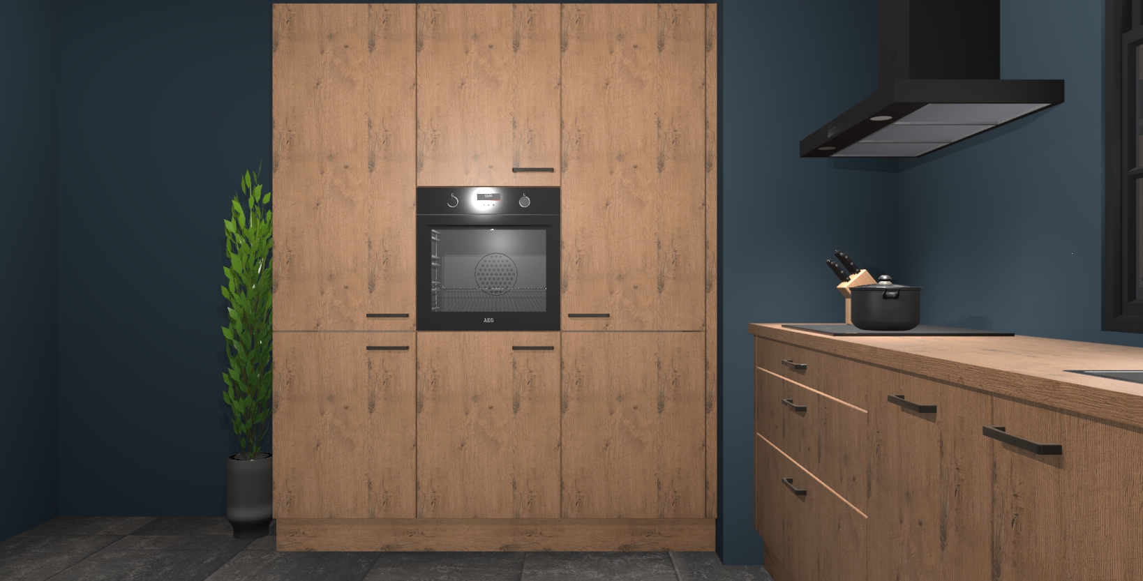 De softclose deuren openen en sluiten is ook heel eenvoudig - geniet van een moeiteloze keukenervaring, zelfs als er kinderen rondlopen. Voor extra gemak bij het plaatsen van uw bestelling bieden we ook een upgrade naar een kookplaat met geïntegreerde afzuiging.