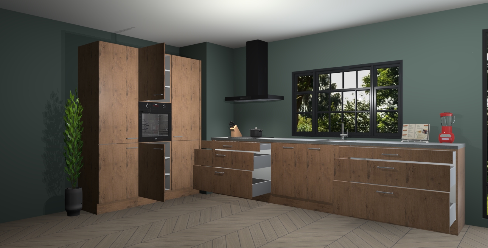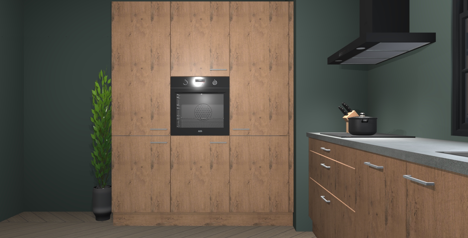 De softclose deuren openen en sluiten is ook heel eenvoudig - geniet van een moeiteloze keukenervaring, zelfs als er kinderen rondlopen. Voor extra gemak bij het plaatsen van uw bestelling bieden we ook een upgrade naar een kookplaat met geïntegreerde afzuiging.