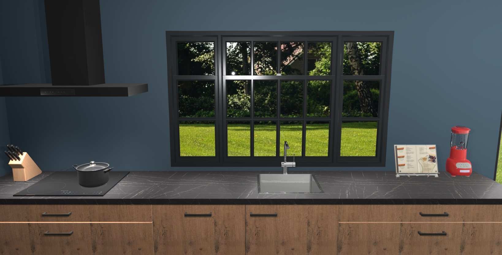 De softclose deuren openen en sluiten is ook heel eenvoudig - geniet van een moeiteloze keukenervaring, zelfs als er kinderen rondlopen. Voor extra gemak bij het plaatsen van uw bestelling bieden we ook een upgrade naar een kookplaat met geïntegreerde afzuiging.