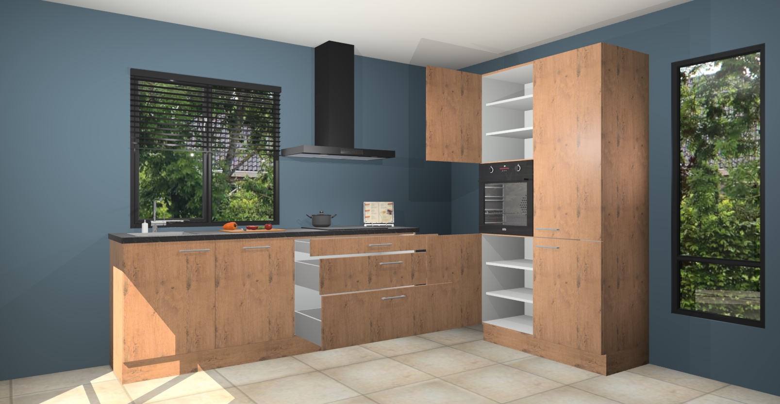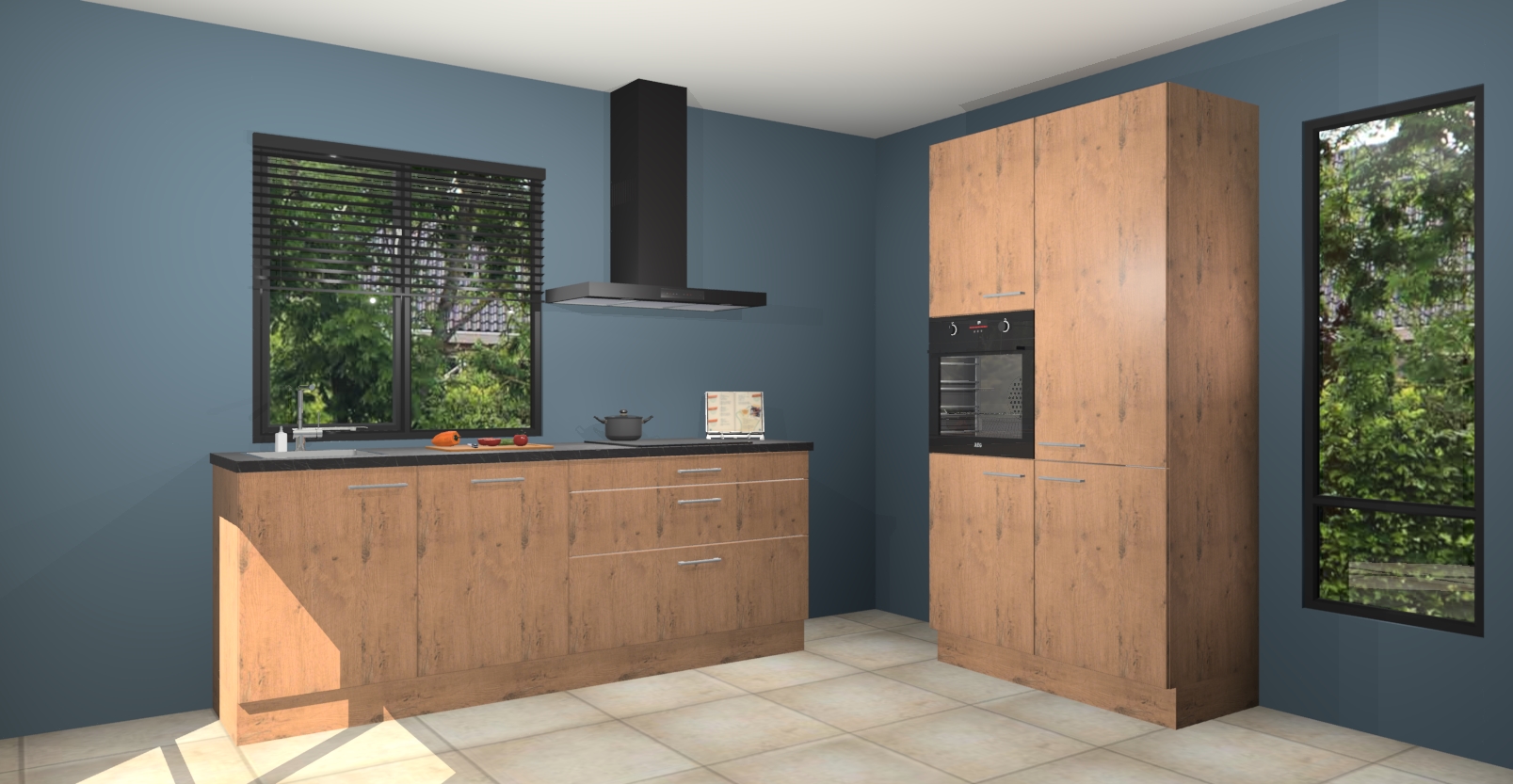 De setting is compleet gemaakt door de vijf inbouwapparaten: wanneer u gaat bestellen kunt u upgraden naar AEG-apparaten als oven, inductieplaat, afzuigkap, vaatwasser en koelkast. Kiest u voor onze Astoria eiken keuken Monaco, dan weet u zeker dat u te maken heeft met Duitse kwaliteit. Bovendien is er altijd sprake van een lage prijs en profiteren we aantrekkelijk leveringstermijn: die bedraagt slechts 7 weken ! Om het extra makkelijk te maken worden de keukenkasten reeds voorgemonteerd geleverd.