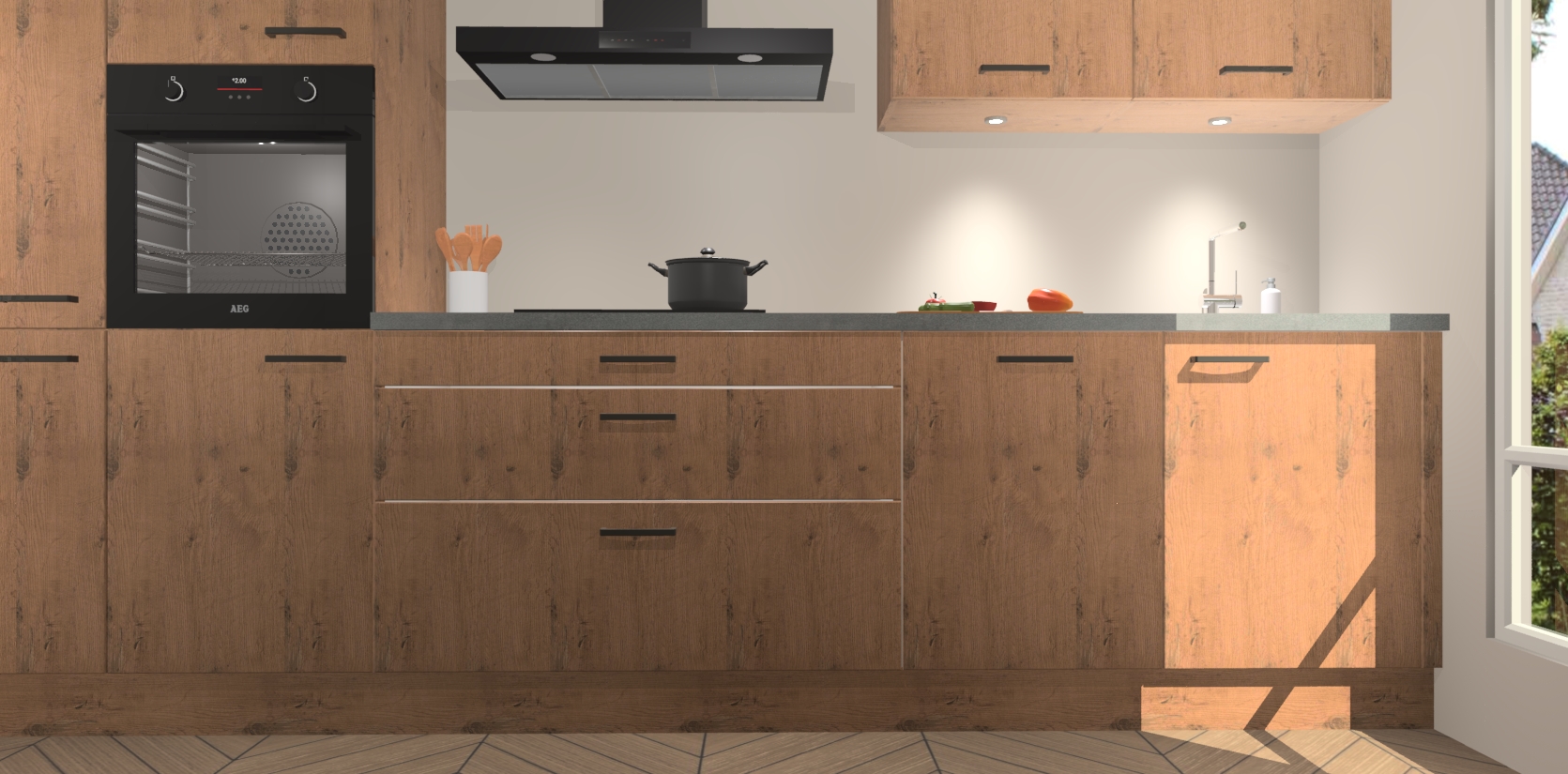 Inclusief plinten, stelpoten en werkblad