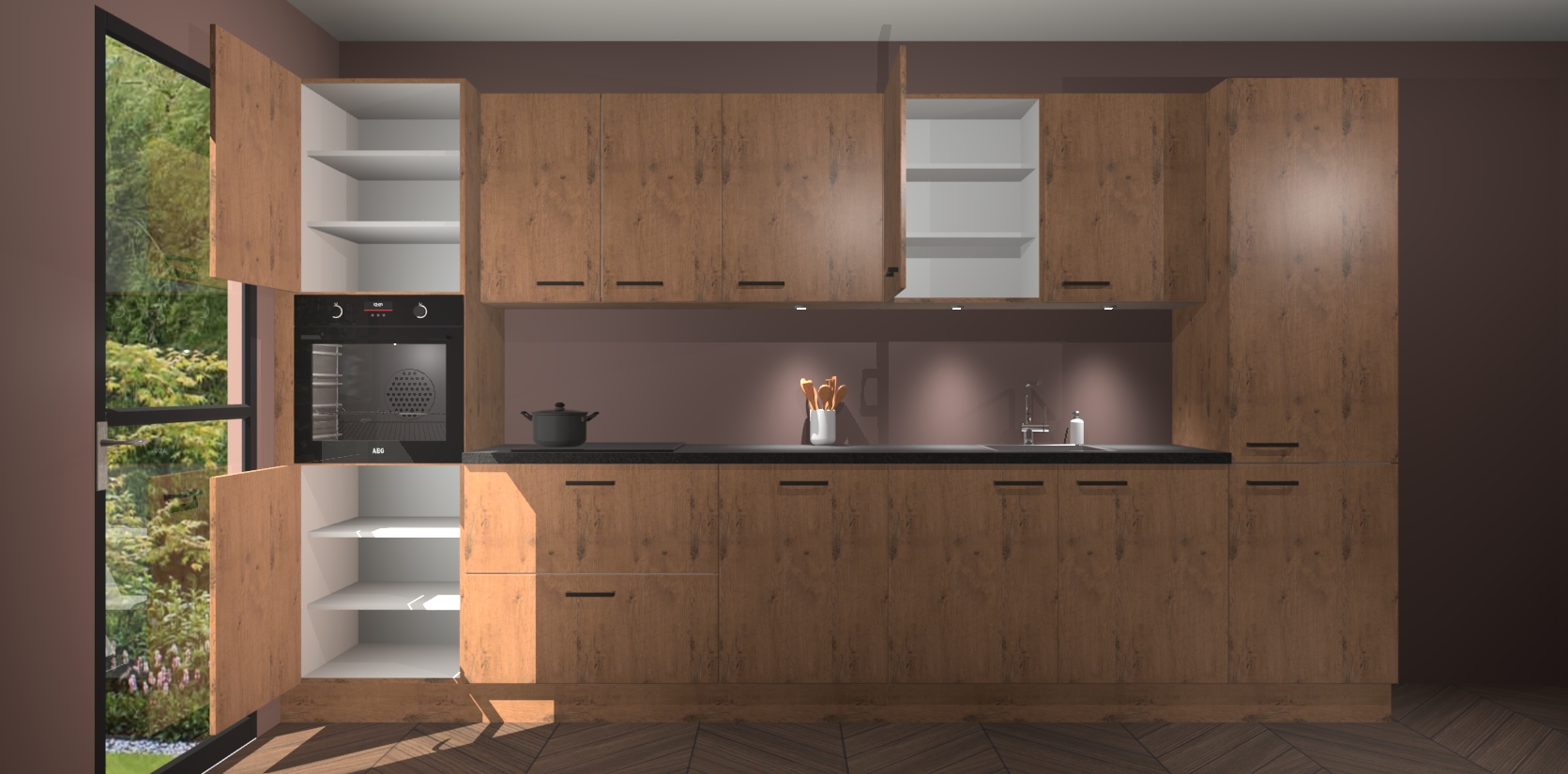 Dit is de perfecte keuken voor wie op zoek is naar een luxueuze stijl zonder zijn portemonnee te legen! Het chique ontwerp van de astoria eiken keuken Wels voegt dat vleugje verfijning toe aan elk huis. Het gemak van voorgemonteerde kasten bespaart u talloze uren tijd en energie, zodat u veel sneller dan verwacht kunt beginnen te genieten van uw prachtige nieuwe keuken. Bovendien bedraagt de levertijd slechts 7 weken.