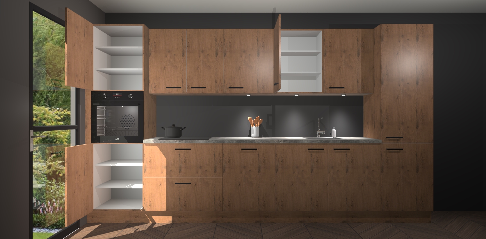 Dit is de perfecte keuken voor wie op zoek is naar een luxueuze stijl zonder zijn portemonnee te legen! Het chique ontwerp van de astoria eiken keuken Wels voegt dat vleugje verfijning toe aan elk huis. Het gemak van voorgemonteerde kasten bespaart u talloze uren tijd en energie, zodat u veel sneller dan verwacht kunt beginnen te genieten van uw prachtige nieuwe keuken. Bovendien bedraagt de levertijd slechts 7 weken.