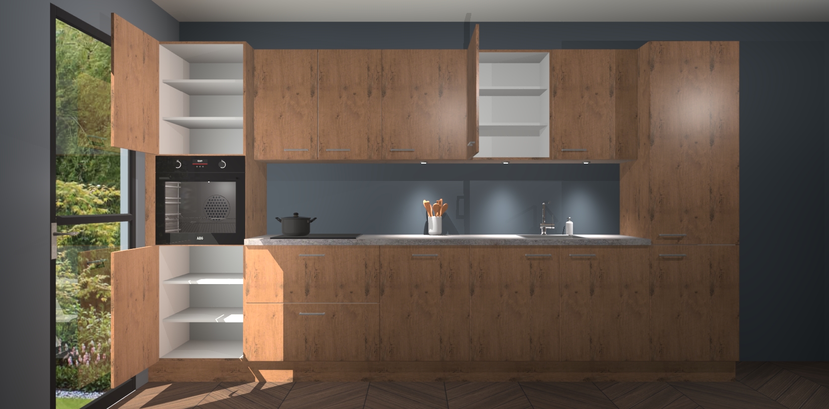 Dit is de perfecte keuken voor wie op zoek is naar een luxueuze stijl zonder zijn portemonnee te legen! Het chique ontwerp van de astoria eiken keuken Wels voegt dat vleugje verfijning toe aan elk huis. Het gemak van voorgemonteerde kasten bespaart u talloze uren tijd en energie, zodat u veel sneller dan verwacht kunt beginnen te genieten van uw prachtige nieuwe keuken. Bovendien bedraagt de levertijd slechts 7 weken.