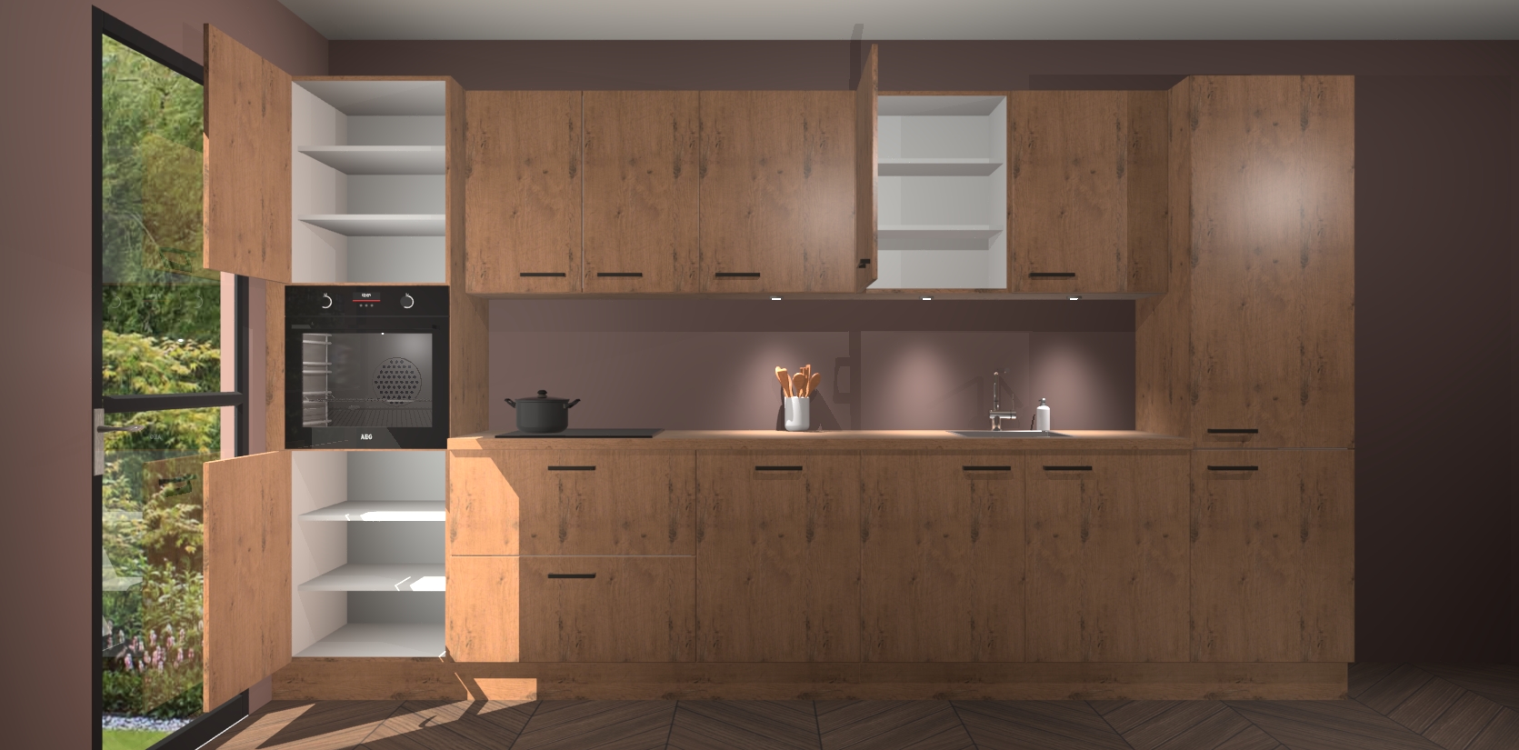 Dit is de perfecte keuken voor wie op zoek is naar een luxueuze stijl zonder zijn portemonnee te legen! Het chique ontwerp van de astoria eiken keuken Wels voegt dat vleugje verfijning toe aan elk huis. Het gemak van voorgemonteerde kasten bespaart u talloze uren tijd en energie, zodat u veel sneller dan verwacht kunt beginnen te genieten van uw prachtige nieuwe keuken. Bovendien bedraagt de levertijd slechts 7 weken.