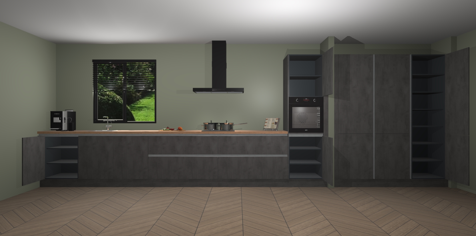 Dankzij de afwerking past de Beton Antraciet greeploze keuken Angola naadloos in elk huis of appartement. De soft-close deuren geven je extra gemoedsrust, want ze sluiten vanzelf en slaan nooit dicht! En alsof dat nog niet genoeg is, worden deze kasten volledig gemonteerd geleverd, dus maak je geen zorgen over eventuele installatieproblemen.