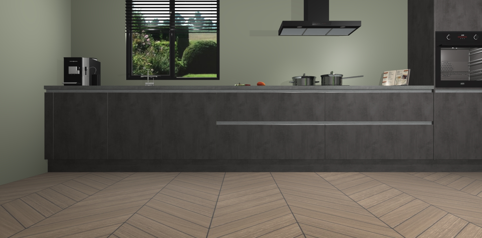 Dankzij de afwerking past de Beton Antraciet greeploze keuken Angola naadloos in elk huis of appartement. De soft-close deuren geven je extra gemoedsrust, want ze sluiten vanzelf en slaan nooit dicht! En alsof dat nog niet genoeg is, worden deze kasten volledig gemonteerd geleverd, dus maak je geen zorgen over eventuele installatieproblemen.