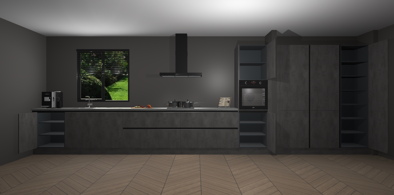 Dankzij de afwerking past de Beton Antraciet greeploze keuken Angola naadloos in elk huis of appartement. De soft-close deuren geven je extra gemoedsrust, want ze sluiten vanzelf en slaan nooit dicht! En alsof dat nog niet genoeg is, worden deze kasten volledig gemonteerd geleverd, dus maak je geen zorgen over eventuele installatieproblemen.