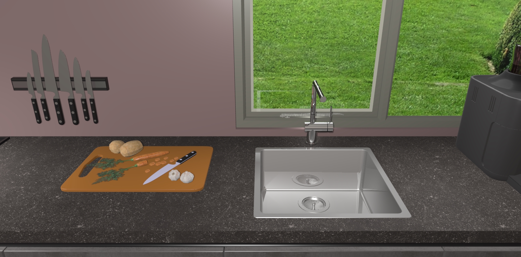 - De spoelbak is nog niet in gevreesd. Dit dient tijdens het werk gedaan te worden