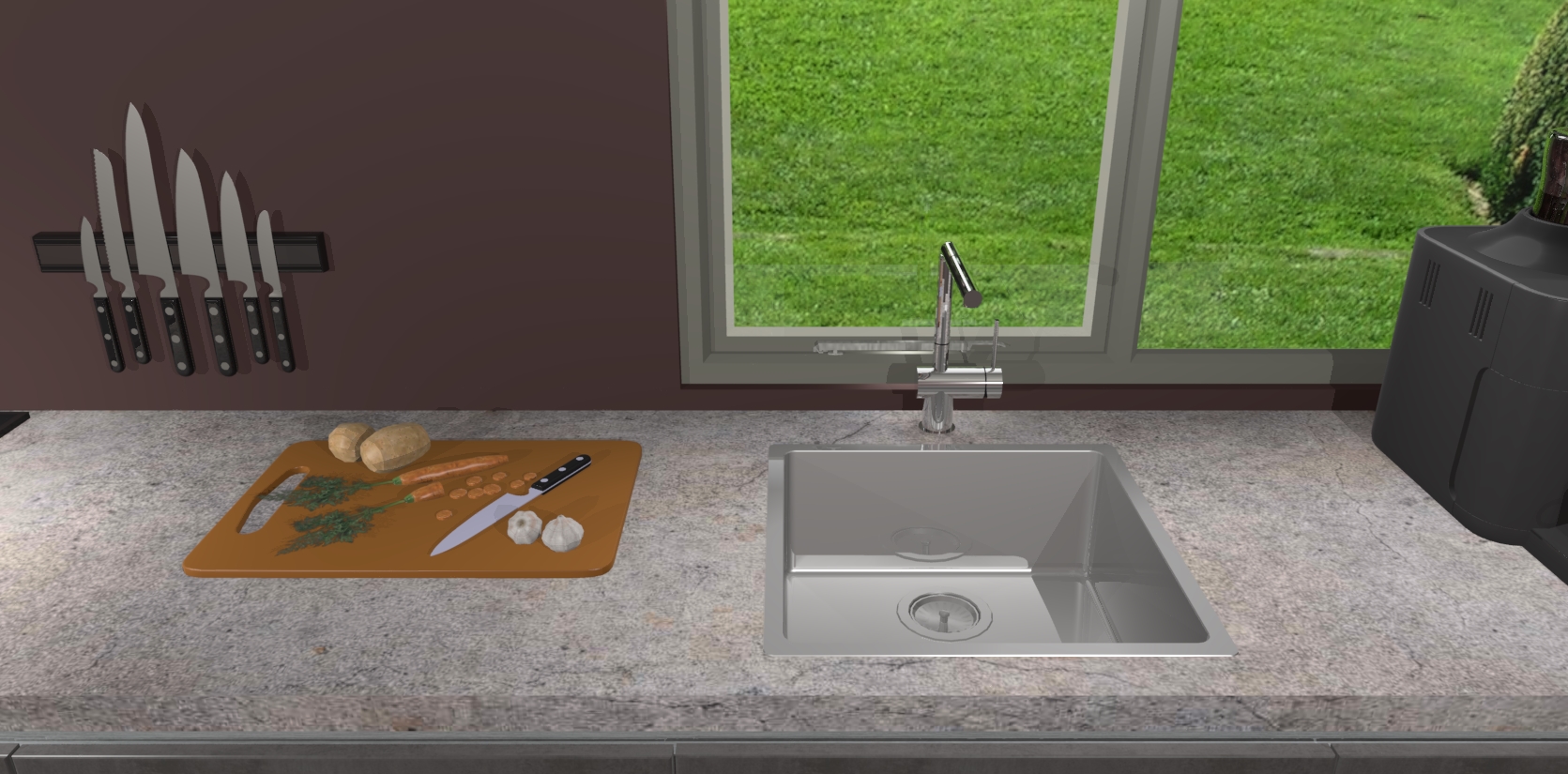 - De spoelbak is nog niet in gevreesd. Dit dient tijdens het werk gedaan te worden