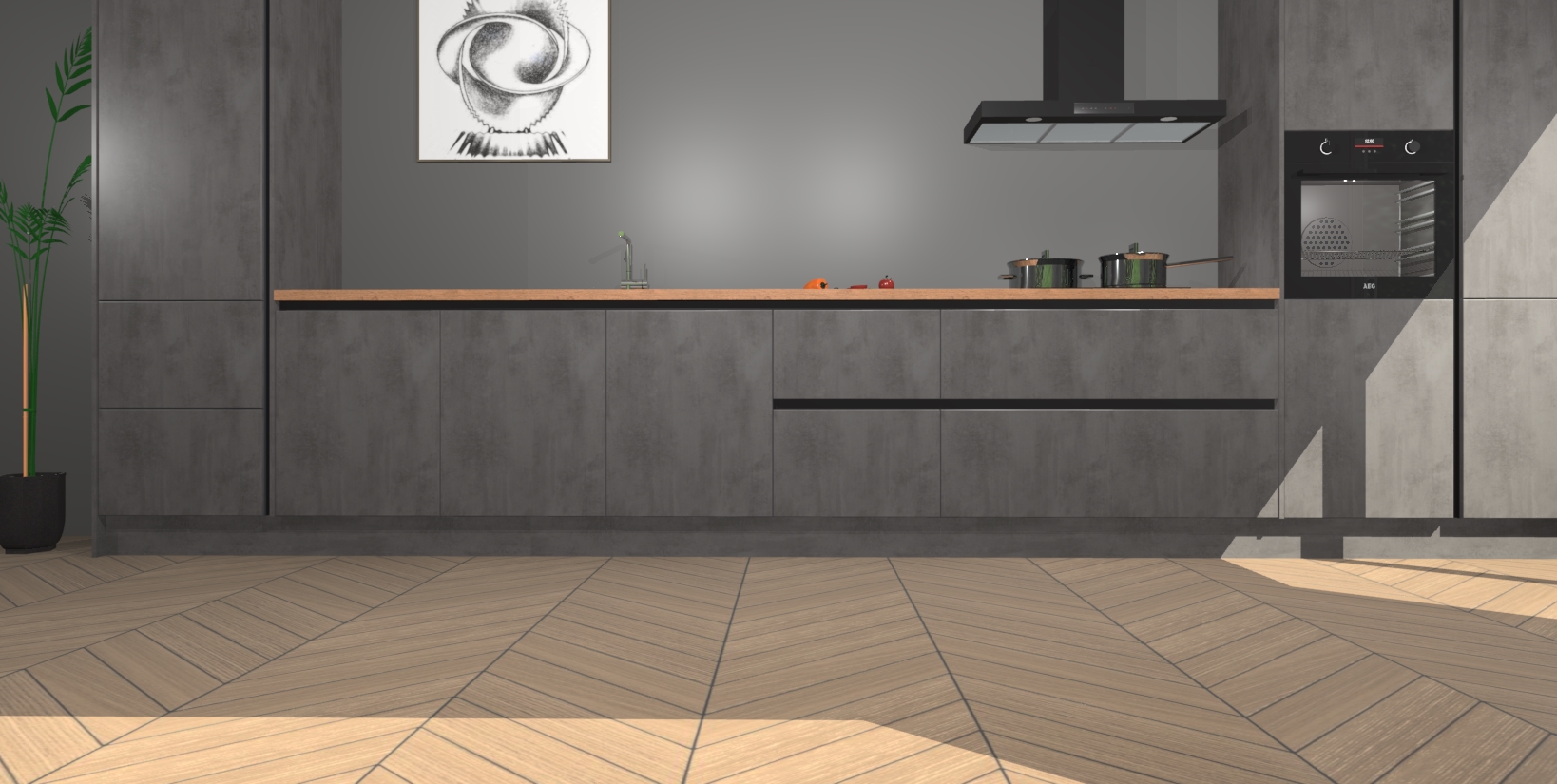 Inclusief plinten, stelpoten en werkblad